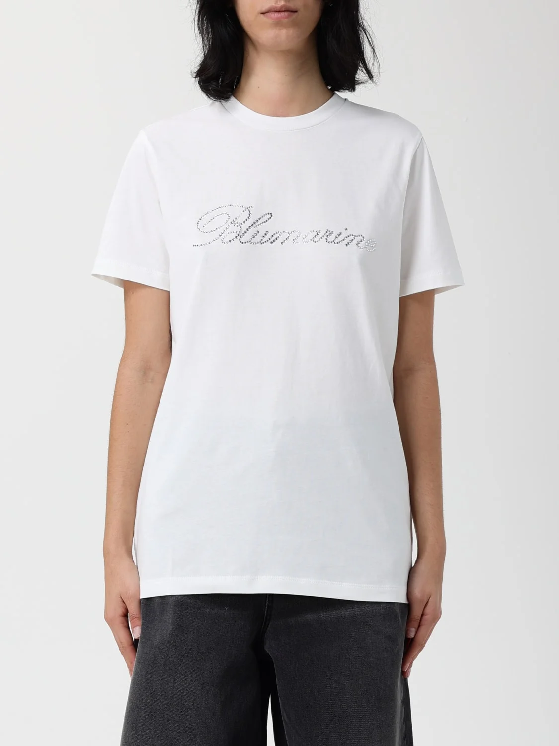 JERSEY T-SHIRT WITH BLUMARINE LOGO EMBROIDERY IN RHINESTONES
