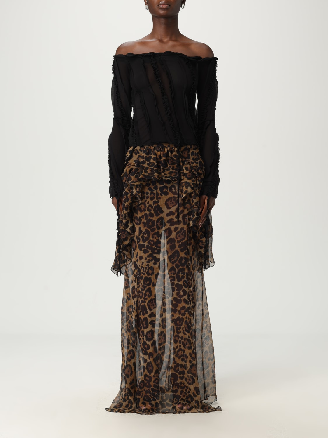 DESCRIPTION - Style: Contemporary - Details: With ruffles - Neckline: Straight - Bottom: With asymmetric hemline - Sleeves: Off-the-shoulder tops - Materials: Viscose - Pattern: undefined DETAILS AND CARE Composition _TESSUTO 1: 100% VI; TESSUTO 2: 94% VI, 6% EA SIZE AND FIT Sizes not available Size and fit Slim fit Designer code: 2C385A N0990 Giglio Code: H26276 Designer: Blumarine Collection: Blumarine Woman Category: Clothing Blumarine