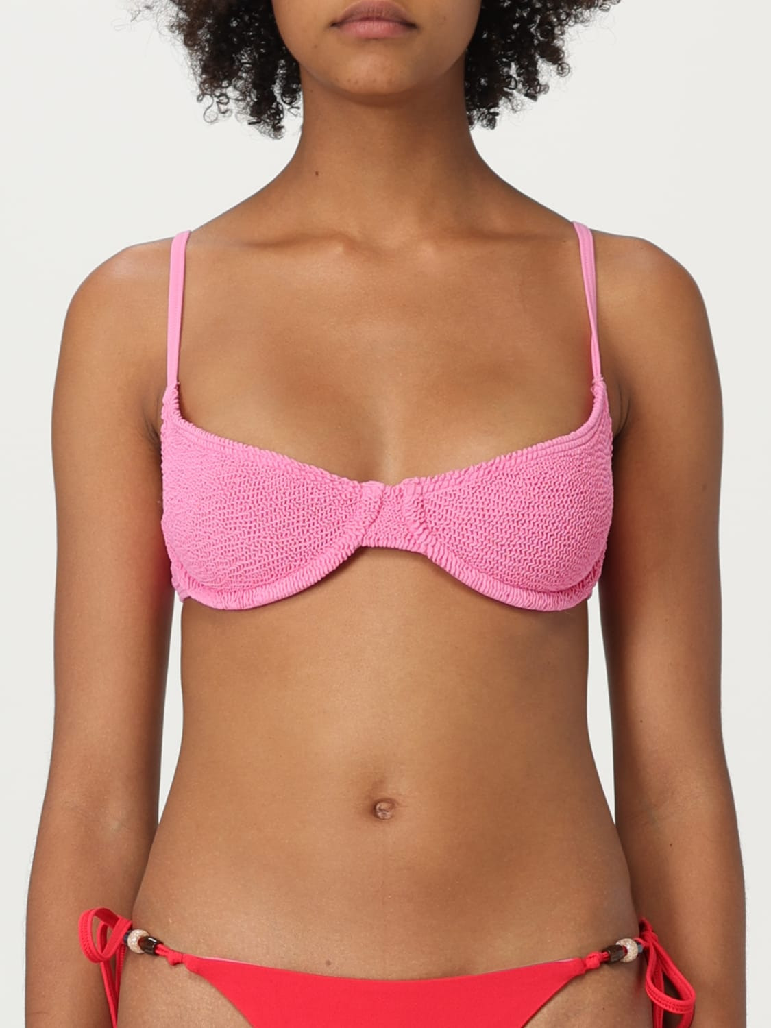 DESCRIPTION - Style: Contemporary - Occasion: Beach - Model: Balconette - Neckline: Balconette - Shoulders: With adjustable shoulder pads - Sleeves: Off-the-shoulder - Materials: Recycled nylon - Pattern: Plain-colored DETAILS AND CARE Composition 88% RECYCLED NYLON 7% NYLON 5% LYCRA SIZE AND FIT Sizes not available Size and fit Slim fit Designer code: BOUND465R CANDYPINK Giglio Code: H06860 Designer: Bond-Eye Collection: Bond-Eye Woman Category: Clothing Bond-Eye