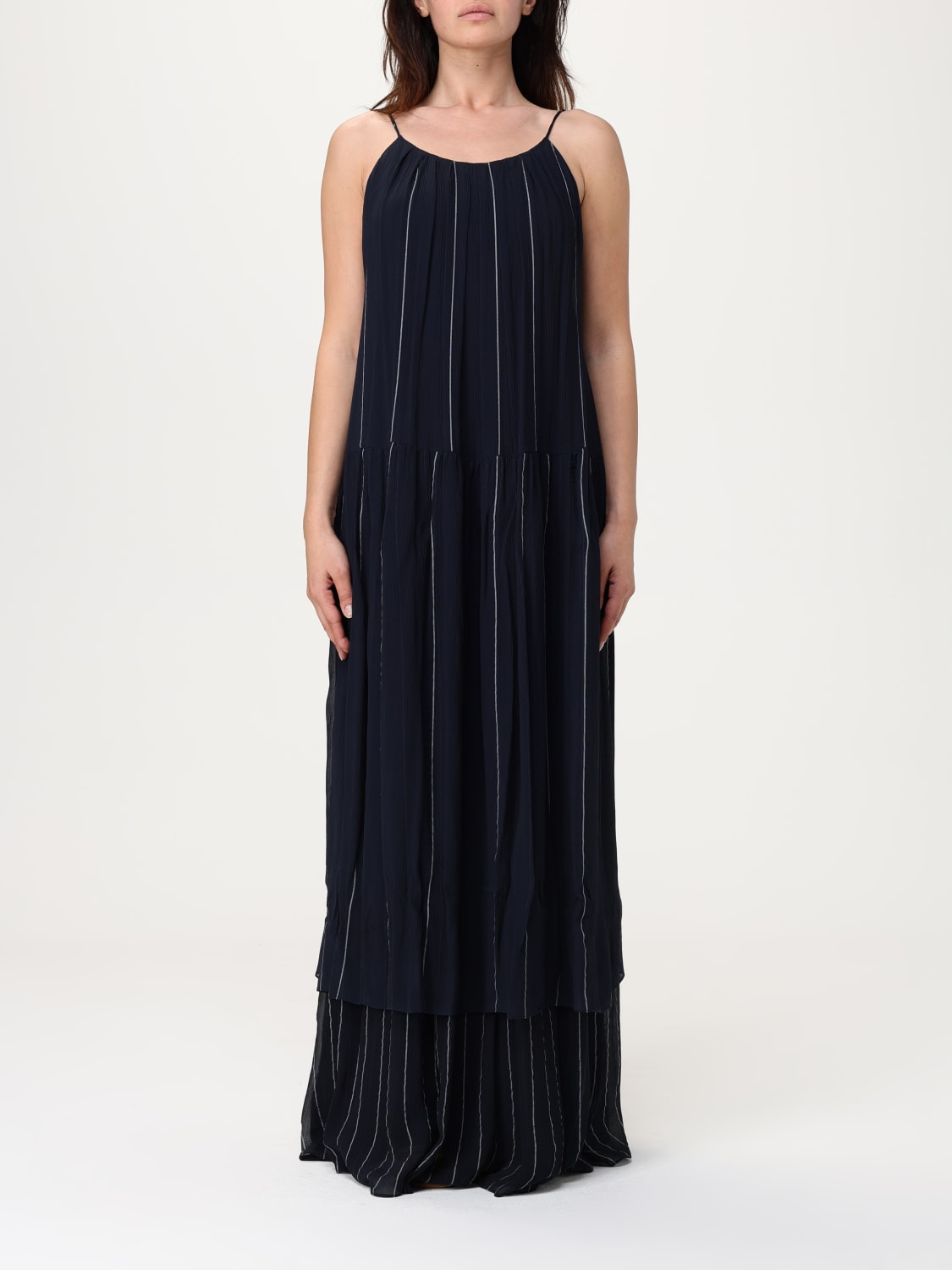 DESCRIPTION - Style: Classic - Neckline: U neckline - Shoulders: Regular - Bottom: With straight hemline - Length: Long dresses - Occasion: Morning dresses - Sleeves: Off-the-shoulder dresses - Materials: Linen blend - Pattern: Stripes DETAILS AND CARE Composition 100 AF SIZE AND FIT Sizes not available Size and fit Regular fit Designer code: 50535154 992 Giglio Code: 426779 Designer: Boss Collection: Boss Woman Category: Clothing Boss