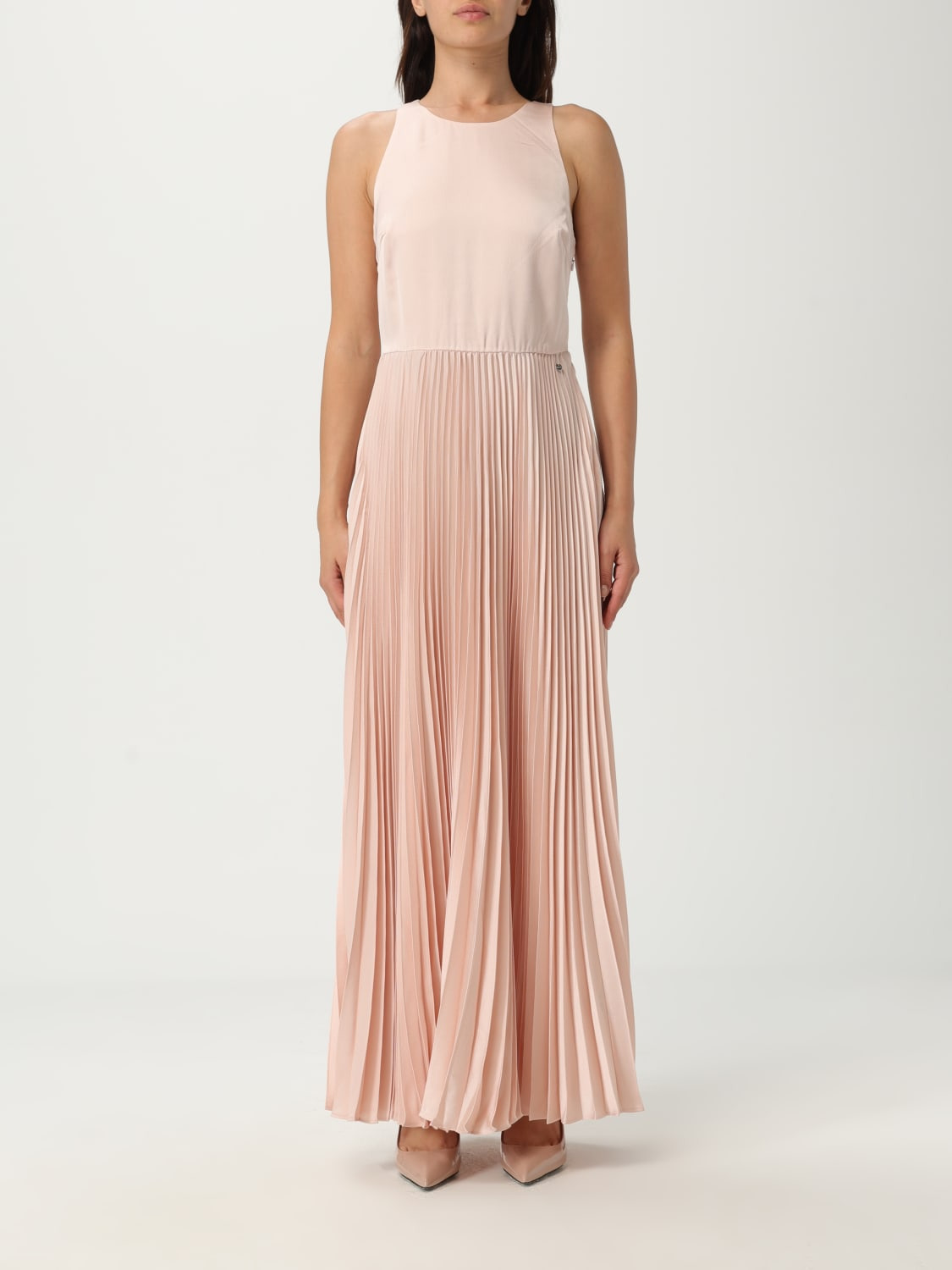 MAXI DRESS IN HAMMERED SATIN WITH PLISSÉ SKIRT