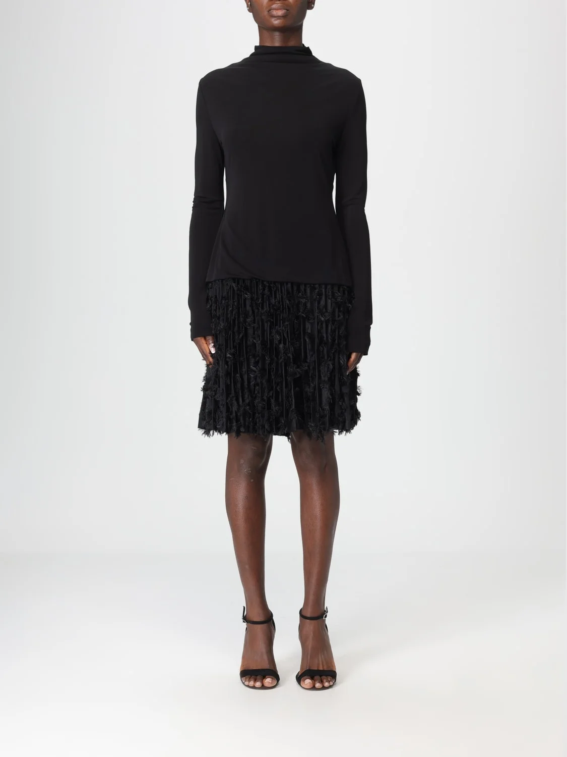 JERSEY DRESS WITH FEATHERED PLISSÉ PLEATS