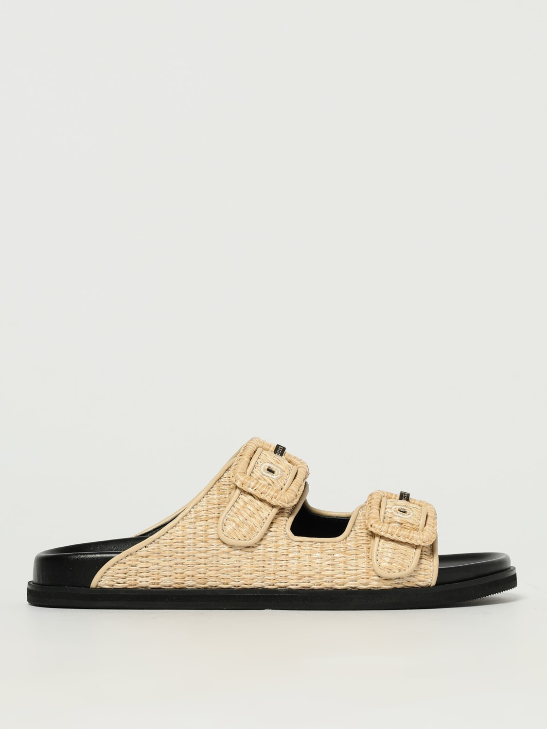 DESCRIPTION - Lining: With logo - Closure: With double belt with buckles - Toe: Round - Sole: Rubber - Heel: Low heel - Materials: Raffia - Pattern: Plain-colored DETAILS AND CARE Composition not available SIZE AND FIT Sizes not available Designer code: 50542333 272 Giglio Code: G98858 Designer: Boss Collection: Boss Woman Category: Shoes Boss