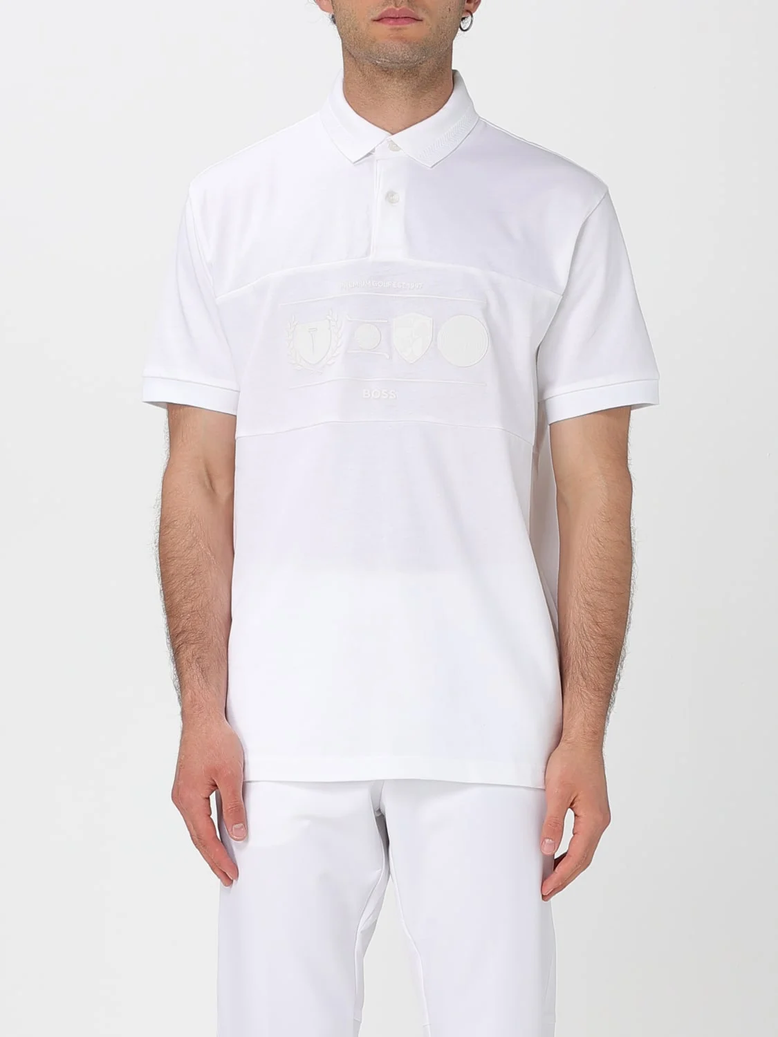 DESCRIPTION - Style: Sporty - Logo: With logo - Shoulders: Regular - Sleeves: Short - Closure: With 2-button placket - Bottom: With straight hemline - Neck: Ribbed - Materials: Cotton - Pattern: Logo DETAILS AND CARE Composition 100 AF SIZE AND FIT Sizes not available Size and fit Regular fit Designer code: 50538111 100 Giglio Code: 426862 Designer: Boss Collection: Boss Men Category: Clothing Boss
