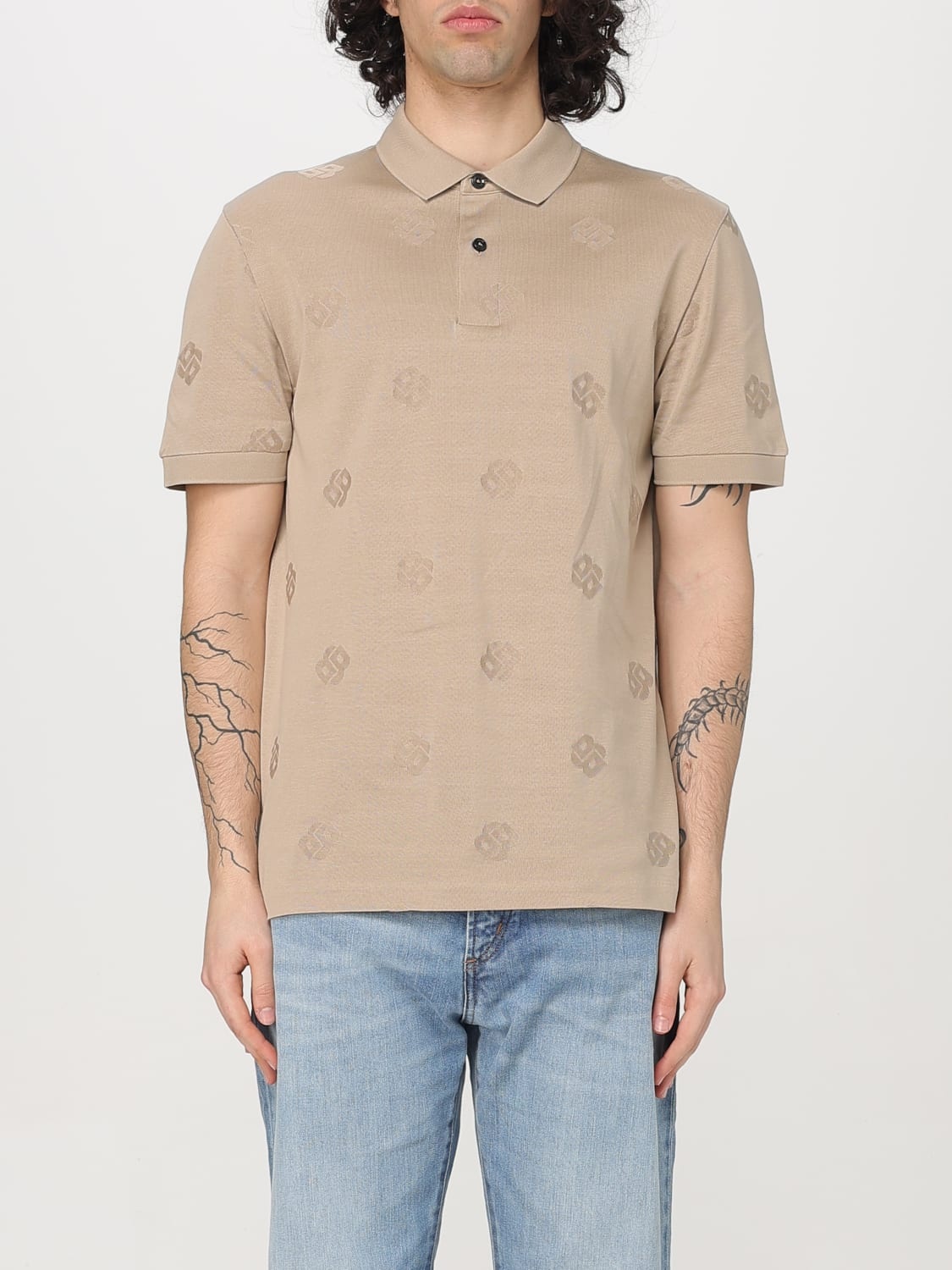 DESCRIPTION - Style: Basic, Sporty - Logo: Embroidered - Neck: Classic - Shoulders: Regular - Sleeves: Short - Closure: With 2-button placket - Bottom: With straight hemline - Materials: Cotton - Pattern: All-over logo DETAILS AND CARE Composition 100% Cotton SIZE AND FIT Sizes not available Size and fit Regular fit Designer code: 50532765 275 Giglio Code: 426761 Designer: Boss Collection: Boss Men Category: Clothing Boss