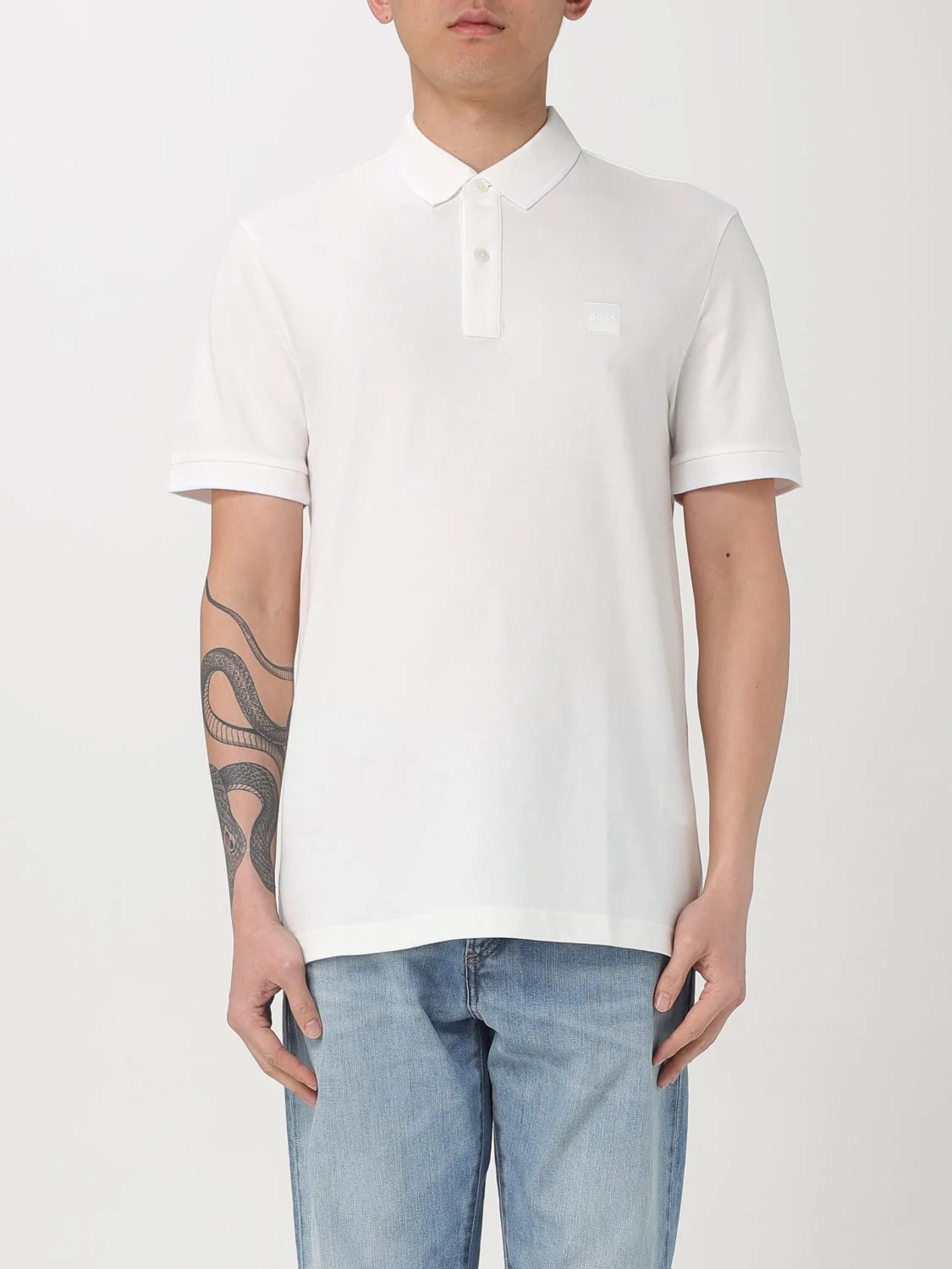 DESCRIPTION - Style: Sporty - Logo: Tone-on-tone - Details: WIth contrasting edges - Shoulders: Regular - Sleeves: Short - Closure: With 2-button placket - Bottom: With straight hemline - Neck: Ribbed - Materials: Cotton - Pattern: Logo DETAILS AND CARE Composition co SIZE AND FIT Sizes not available Size and fit Slim fit Designer code: 50507699 106 Giglio Code: G56916 Designer: Boss Collection: Boss Men Category: Clothing Boss