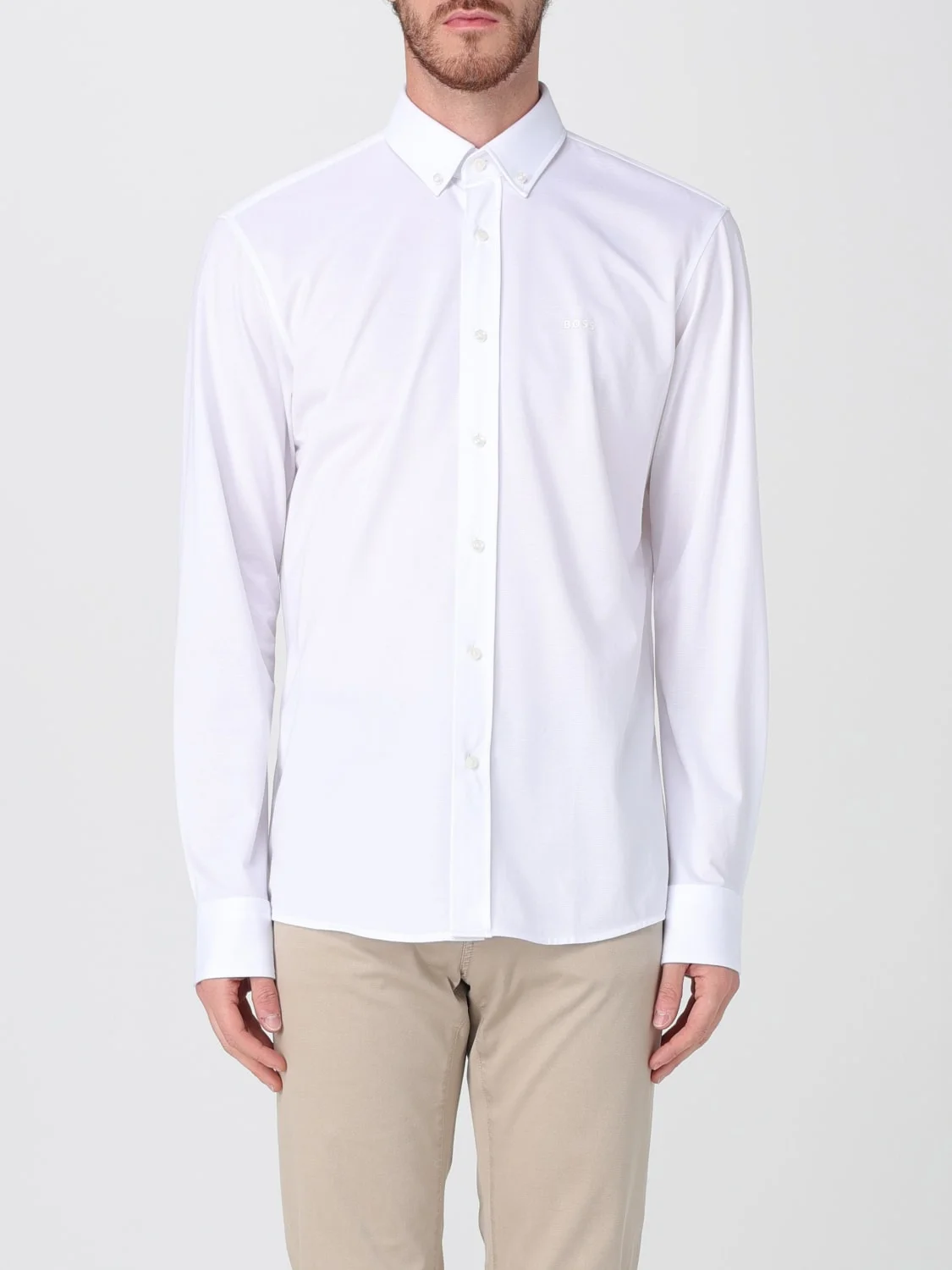 DESCRIPTION - Style: Minimal - Neck: Button-down - Shoulders: Regular - Closure: With buttons - Bottom: With curved hemline - Sleeves: Long sleeve shirts - Materials: Cotton - Pattern: Plain-colored DETAILS AND CARE Composition not available SIZE AND FIT Sizes not available Size and fit Regular fit Designer code: 50469378 100 Giglio Code: H06884 Designer: Boss Collection: Boss Men Category: Clothing Boss