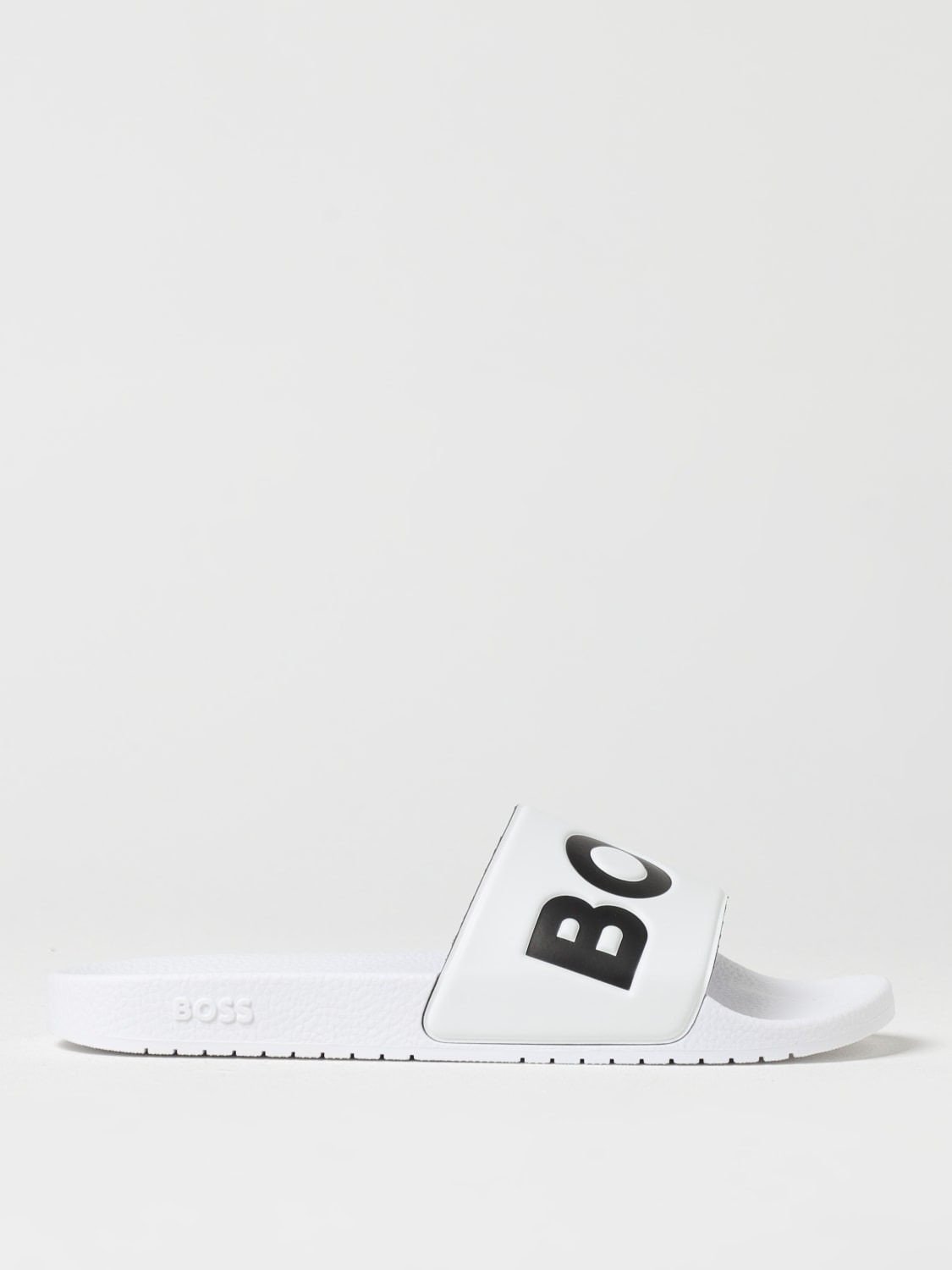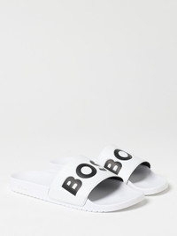 DESCRIPTION - Logo: Print - Model: Slippers - Toe: Round - Sole: Rubber - Lining: Rubber - Materials: Rubber - Pattern: Logo DETAILS AND CARE Composition 100% POLYESTER, 70% POLYVINYLCHLORID 30% SIZE AND FIT Sizes not available Designer code: 50536835 101 Giglio Code: 426751 Designer: Boss Collection: Boss Men Category: Shoes Boss