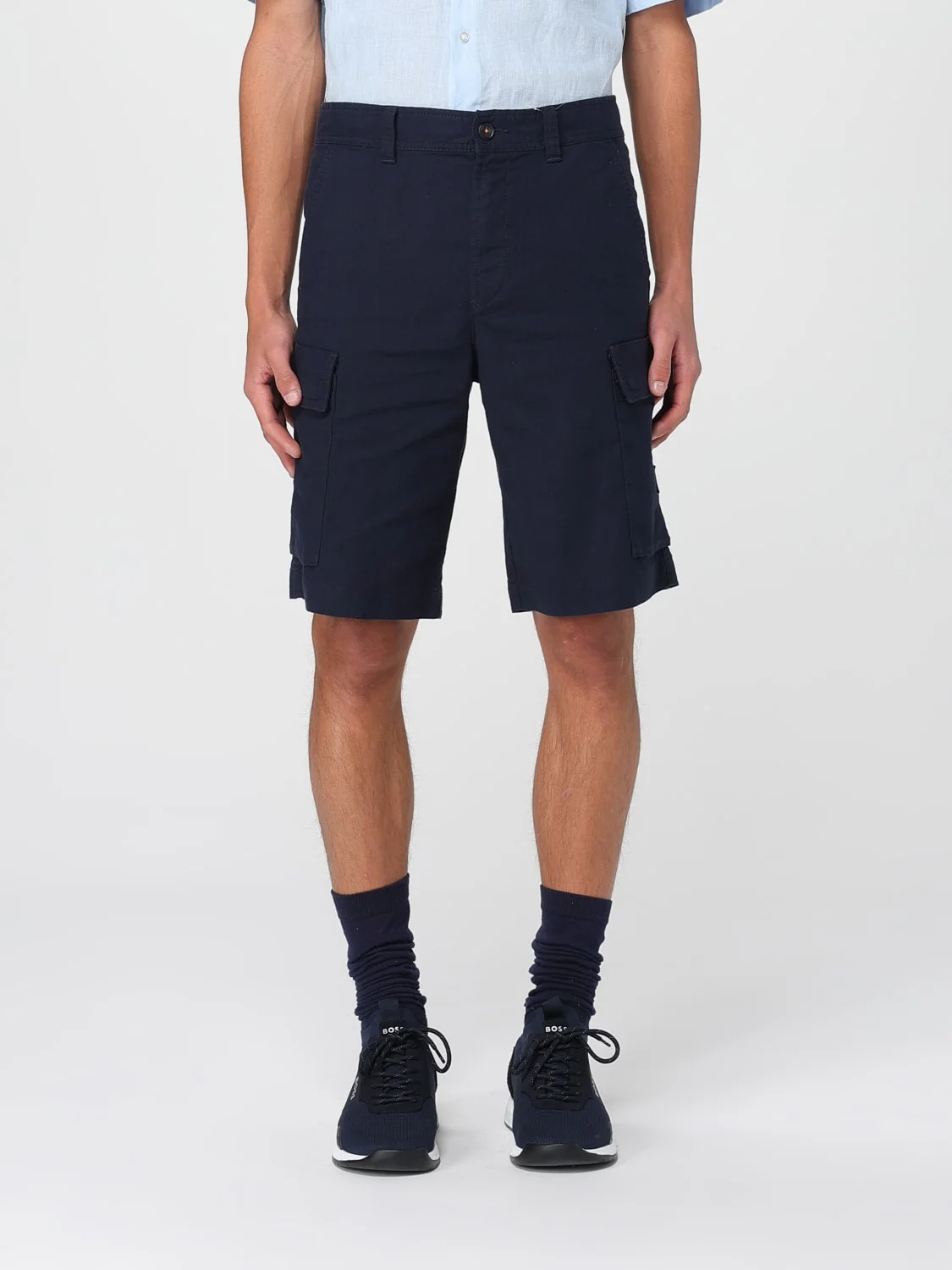 DESCRIPTION - Style: Urban-street - Model: Cargo - Length: Knee high - Pockets: Back slit pocket - Waist: Medium - Bottom: With straight hemline - Closure: With button and zip - Materials: Linen blend - Pattern: Monogram DETAILS AND CARE Composition 64 LI 36 PL SIZE AND FIT Sizes not available Size and fit Regular fit Designer code: 50536888 404 Giglio Code: H00937 Designer: Boss Collection: Boss Men Category: Clothing Boss