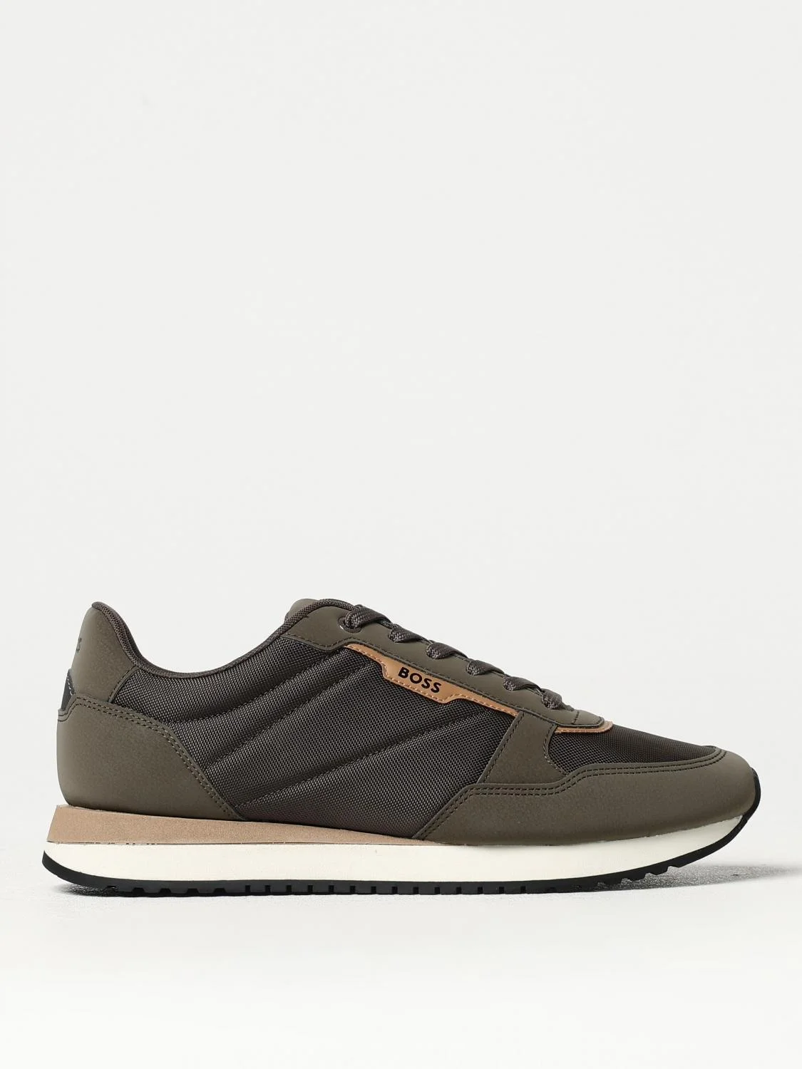 DESCRIPTION - Logo: Print - Lining: Mesh, With logo - Model: Lace up - Toe: Round - Ankle: Low top - Sole: Rubber - Materials: Grained leather, Mesh - Pattern: Plain-colored DETAILS AND CARE Composition RUBBER AND EVA SIZE AND FIT Sizes not available Designer code: 50529542 302 Giglio Code: G20438 Designer: Boss Collection: Boss Men Category: Shoes Boss