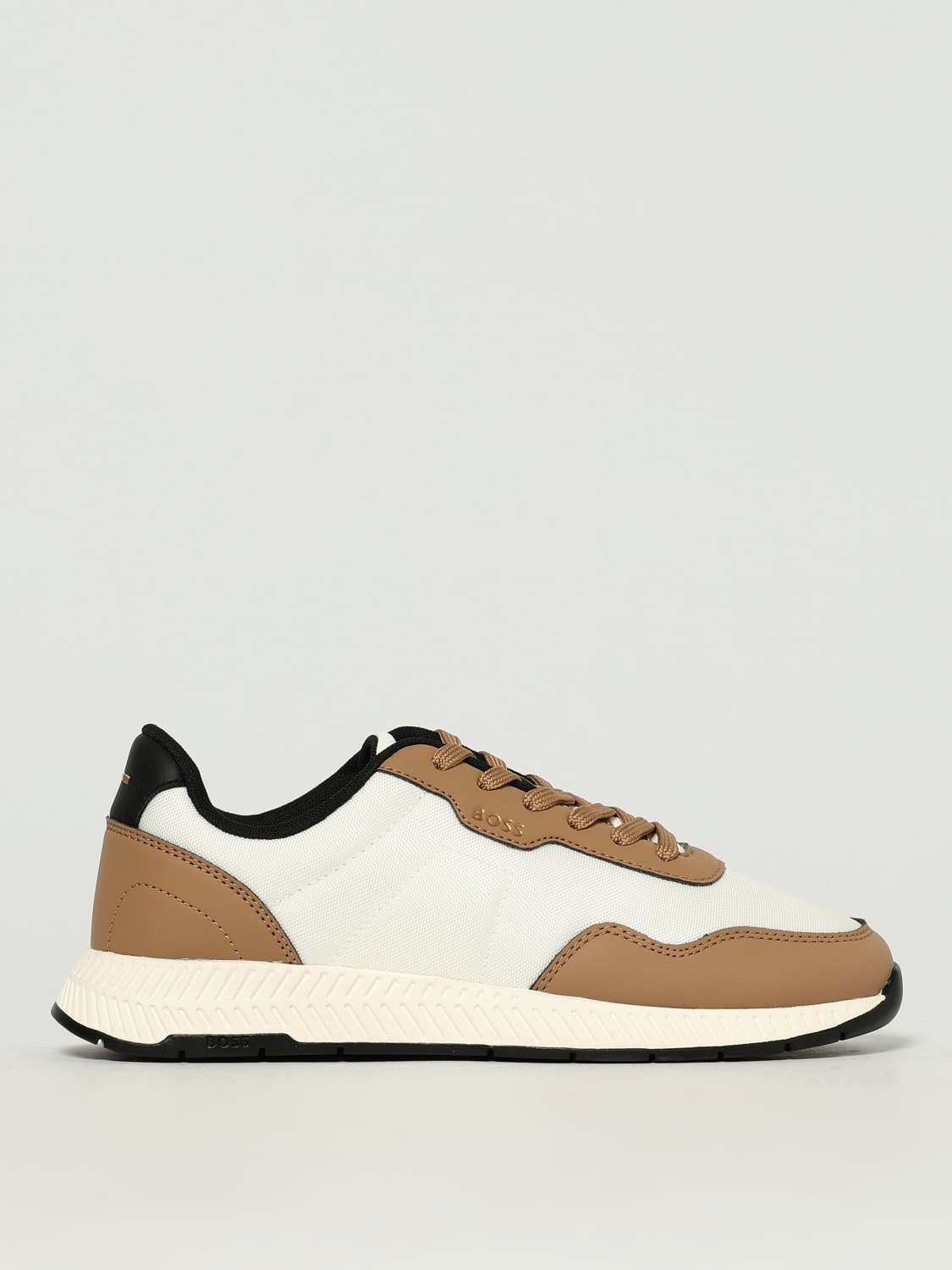 DESCRIPTION - Logo: Laminated - Lining: With logo - Model: Lace up - Toe: Round - Ankle: Padded - Sole: Rubber - Materials: Synthetic leather - Pattern: Plain-colored DETAILS AND CARE Composition 100% Textile; Inserts:100% Syntetic; Sole:100 SIZE AND FIT Sizes not available Designer code: 50536481 124 Giglio Code: G66092 Designer: Boss Collection: Boss Men Category: Shoes Boss