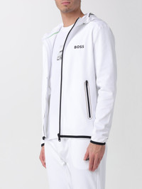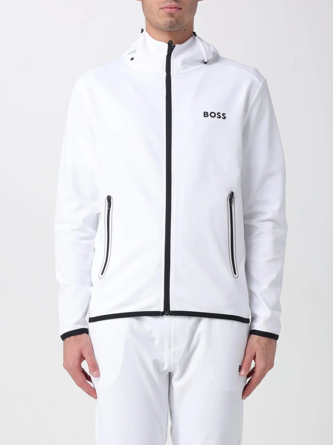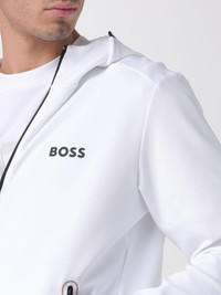 DESCRIPTION - Style: Sporty, Urban-street - Occasion: Gym - Logo: Contrasting - Neck: High - Shoulders: Regular - Sleeves: Long - Closure: With zip - Pockets: America - Bottom: With straight hemline - Model: With hood - Materials: Stretch technical fabric - Pattern: Logo, Plain-colored DETAILS AND CARE Composition 90% RPA 10% EA SIZE AND FIT Sizes not available Size and fit Regular fit Designer code: 50542948 100 Giglio Code: 434005 Designer: Boss Collection: Boss Men Category: Clothing Boss