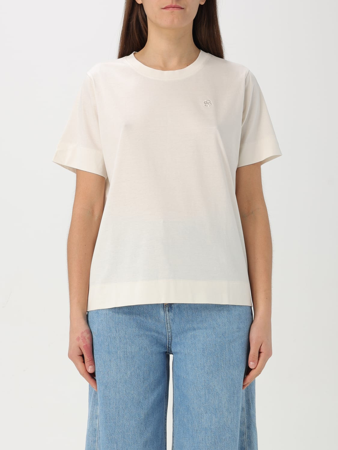 DESCRIPTION - Style: Basic - Logo: Tone-on-tone - Model: Crewneck - Neckline: Crewneck - Shoulders: Regular - Sleeves: Short - Bottom: With straight hemline - Materials: Cotton - Pattern: Plain-colored DETAILS AND CARE Composition 100co SIZE AND FIT Sizes not available Size and fit Regular fit Designer code: 50532092 118 Giglio Code: G59403 Designer: Boss Collection: Boss Woman Category: Clothing Boss