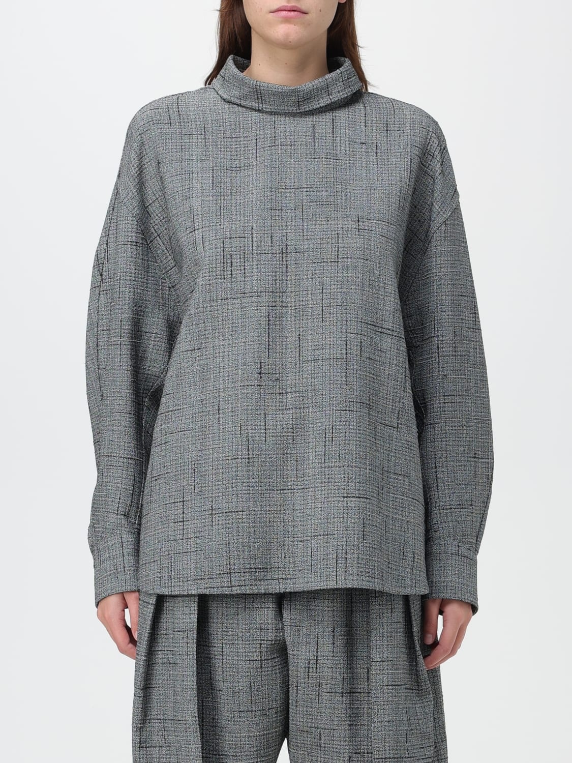 Descrizione - Casual style - Relaxed fit - Viscose and silk - 3D crisscross pattern - Raised collar - Dropped shoulders - Long sleeves - Cuffs with button - Back button closure - Rear teardrop cut-out detail - Rounded hem - Made in Italy DETAILS AND CARE Composition 100 AF SIZE AND FIT Sizes not available Designer code: 770949 V3FD0 1360 Giglio Code: 397779 Designer: Bottega Veneta Collection: Bottega Veneta Woman Category: Clothing Bottega Veneta