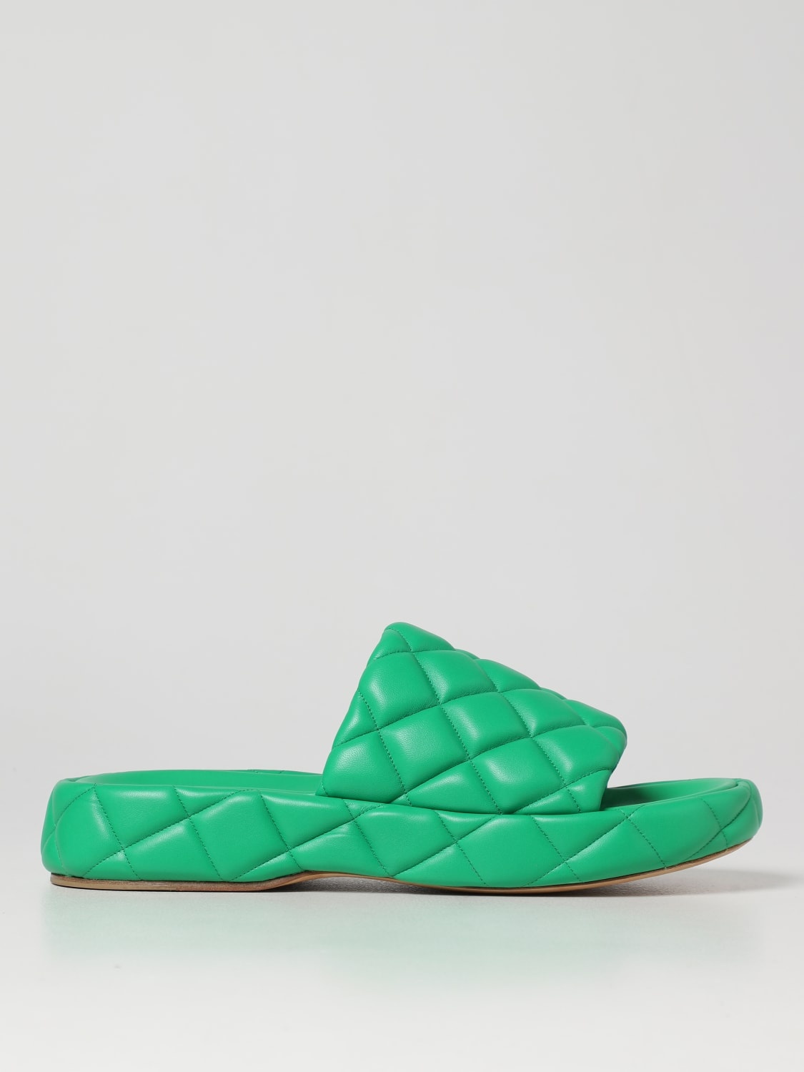 Descrizione - Contemporary design - Flat - Smooth calfskin - Quilted effect - Open round toe - Maxi padded band - Ergonomic leather insole - Embossed logo - Real suede sole - Made in Italy DETAILS AND CARE Composition 100 AF SIZE AND FIT Sizes Heel: 4,5 cm Designer code: 709004VBRR0 3708 Giglio Code: 363500 Designer: Bottega Veneta Collection: Bottega Veneta Men Category: Shoes Bottega Veneta