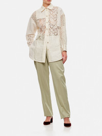 DESCRIPTION - Style: Classic, Elegant - Closure: With button and zip - Pockets: America - Waist: High waist - Bottom: With straight hemline - Materials: Twill - Pattern: Plain-colored DETAILS AND CARE Composition not available SIZE AND FIT Sizes not available Size and fit Slim fit Designer code: 770908V35E0 1575 Giglio Code: E86466 Designer: Bottega Veneta Collection: Bottega Veneta Woman Category: Clothing Bottega Veneta