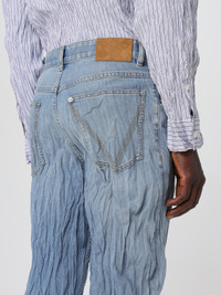 DESCRIPTION - Style: Urban-street - Logo: Back - Model: Creased effect - Closure: 1-button - Pockets: 5-pocket - Waist: With loops, Medium - Pattern: Plain-colored DETAILS AND CARE Composition not available SIZE AND FIT Sizes not available Size and fit Slim fit Designer code: 833038V5N10 4942 Giglio Code: H00383 Designer: Bottega Veneta Collection: Bottega Veneta Men Category: Clothing Bottega Veneta