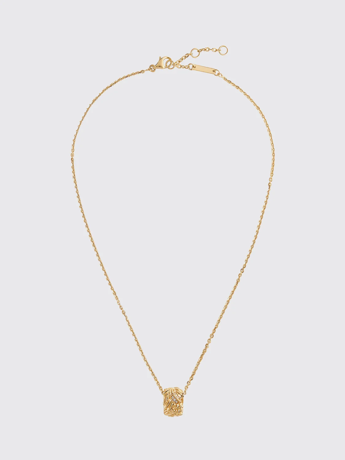 DESCRIPTION - Style: Casual - Logo: Engraved - Details: With rhinestones, With sliding pendant - Model: Crewneck - Closure: Trigger - Occasion: Morning - Materials: 18 KT gold-plated sterling silver - Pattern: Plain-colored DETAILS AND CARE Composition Argento SIZE AND FIT Sizes not available Designer code: 838173V0V15 9000 Giglio Code: H99882 Designer: Bottega Veneta Collection: Accessories Bottega Veneta Category: Accessories > Jewel