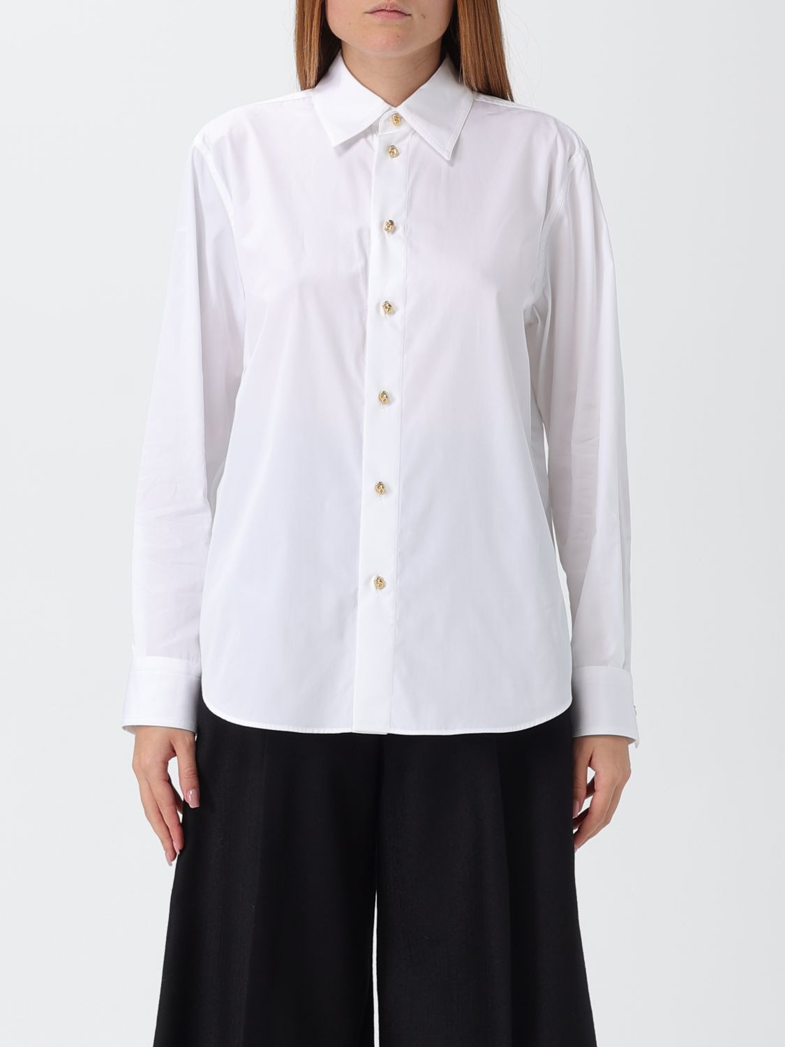 DESCRIPTION - Style: Classic - Neck: Classic - Shoulders: Regular - Closure: With buttons - Bottom: With curved hemline - Sleeves: Long sleeve shirts - Materials: Cotton poplin - Pattern: Plain-colored DETAILS AND CARE Composition 100% Cotone SIZE AND FIT Sizes not available Size and fit Regular fit Designer code: 838420V2H20 9000 Giglio Code: H33172 Designer: Bottega Veneta Collection: Bottega Veneta Woman Category: Clothing Bottega Veneta