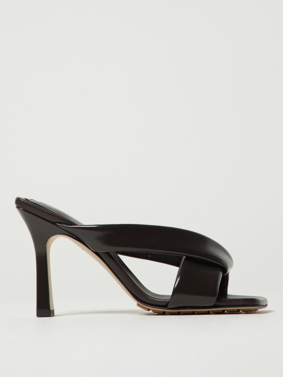 DESCRIPTION - Lining: Leather, With imprinted logo - Model: Padded - Toe: Open, Squared - Sole: Biodegradable leather and organic injected rubber - Materials: Smooth calfskin - Pattern: Plain-colored DETAILS AND CARE Composition CALF SIZE AND FIT Sizes Heel: 11,5 cm Designer code: 827612 V3H90 2113 Giglio Code: 428847 Designer: Bottega Veneta Collection: Bottega Veneta Woman Category: Shoes Bottega Veneta