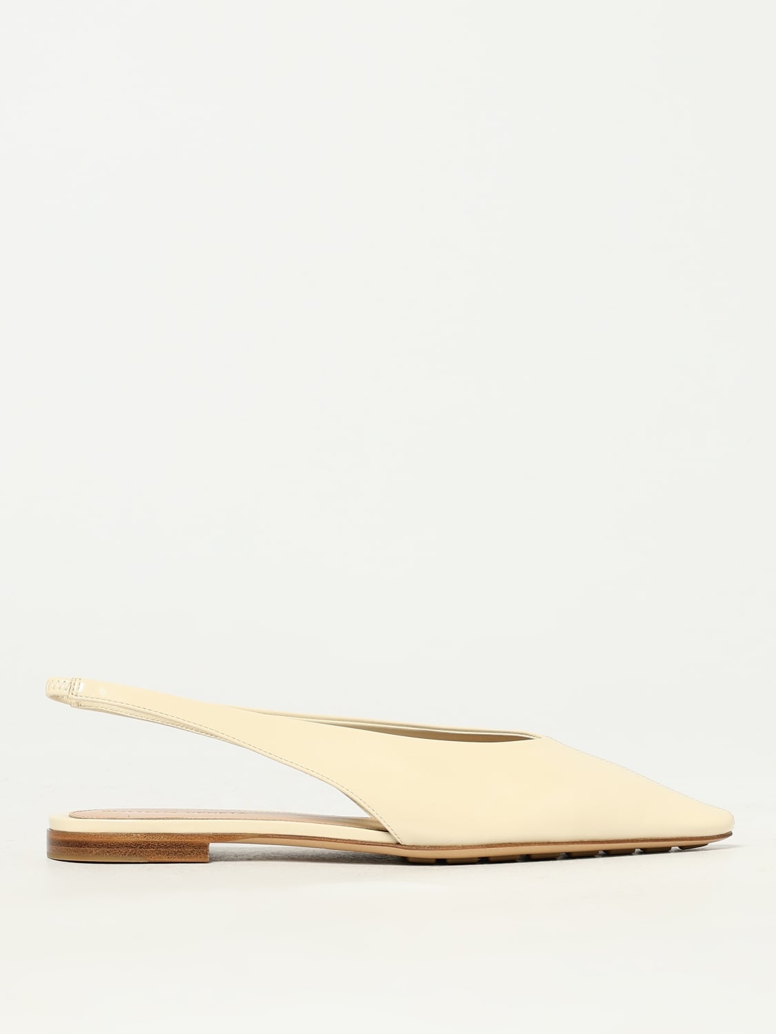 DESCRIPTION - Lining: Leather, With logo - Model: Slingback - Toe: Almond - Heel: With stretch strap - Sole: Biodegradable leather and organic injected rubber - Materials: Smooth calfskin - Pattern: Plain-colored DETAILS AND CARE Composition CALF SIZE AND FIT Sizes not available Designer code: 827702 V3H90 9031 Giglio Code: 428849 Designer: Bottega Veneta Collection: Bottega Veneta Woman Category: Shoes Bottega Veneta