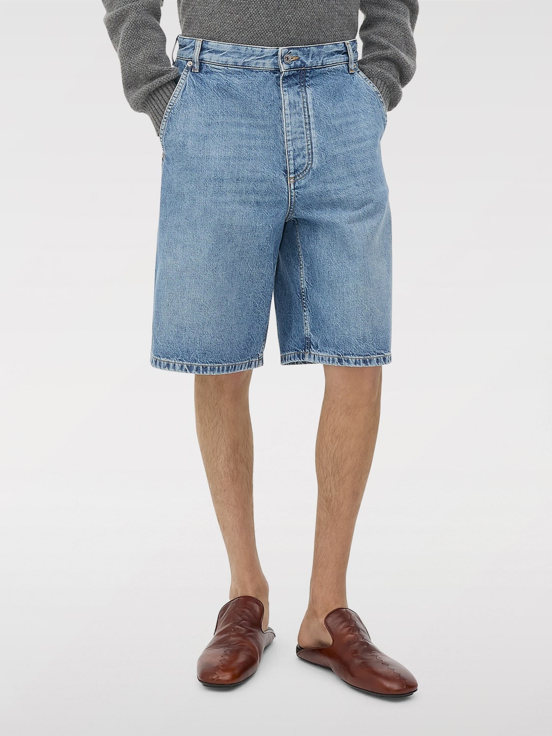 DESCRIPTION - Style: Casual, Sporty - Length: Knee high - Closure: With button and zip - Pockets: Back patch pocket, America - Waist: With loops, Medium waist - Bottom: With straight hemline - Materials: Cotton denim - Pattern: Plain-colored DETAILS AND CARE Composition 100% COTTON SIZE AND FIT Sizes not available Size and fit Regular fit Designer code: 813524V42W0 4715 Giglio Code: G57978 Designer: Bottega Veneta Collection: Bottega Veneta Men Category: Clothing Bottega Veneta