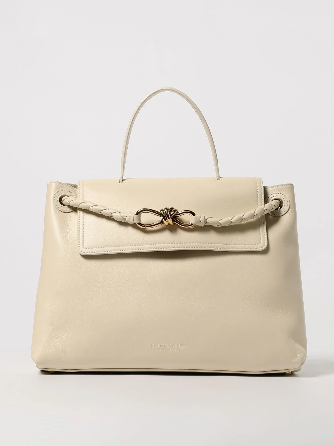 DESCRIPTION - Lining: With logo - Model: Hand - Closure: With button flap - Shape: Rectangular - Handle: Flat - Shoulder strap: Adjustable and removable - Measurements: Shoulder strap length from shoulder: 55 cm - Details: With knot - Materials: Smooth calfskin - Pattern: Plain-colored DETAILS AND CARE Composition GENERAL CALF LEATHER BOS TAURUS 100 - SIZE AND FIT Sizes Width : 34 cm Height: 26 cm Depth: 15 cm Handle height: 11,5 cm Designer code: 817231V4O92 9195 Giglio Code: H27217 Designer: Bottega Veneta Collection: Bottega Veneta Woman Category: Bags Bottega Veneta