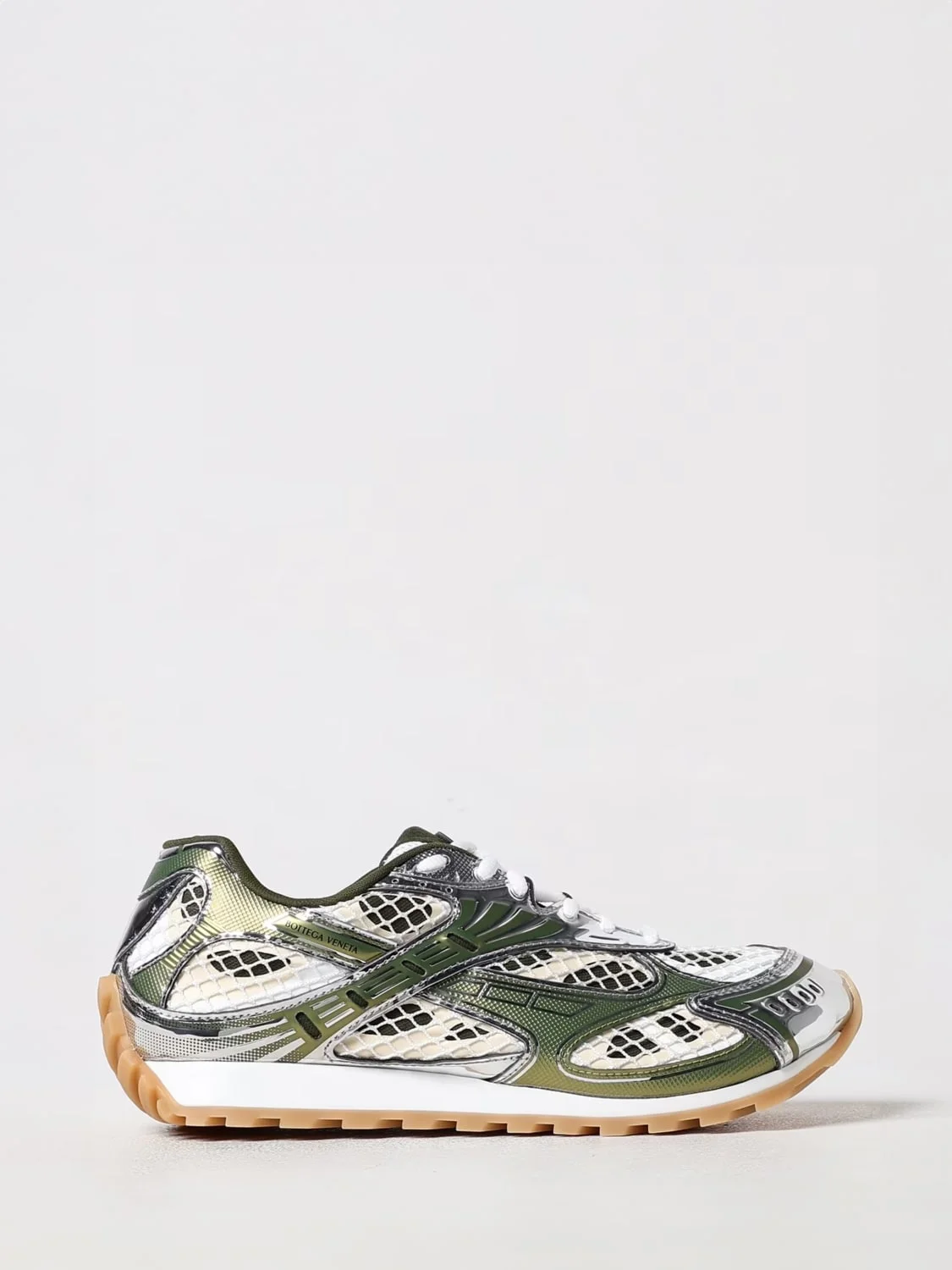 DESCRIPTION - Style: Urban-street - Lining: Mesh, With logo - Model: Lace up - Toe: Round - Ankle: Low top, Padded - Sole: Dented tread, Rubber - Logo: With logo - Occasion: Morning - Materials: Syntethic laminated leather - Pattern: Abstract DETAILS AND CARE Composition T 62% POLYURETHANE T 27% POLYESTER T SIZE AND FIT Sizes not available Designer code: 741357V2X40 2848 Giglio Code: 438378 Designer: Bottega Veneta Collection: Shoes Bottega Veneta Category: Shoes > Sneakers