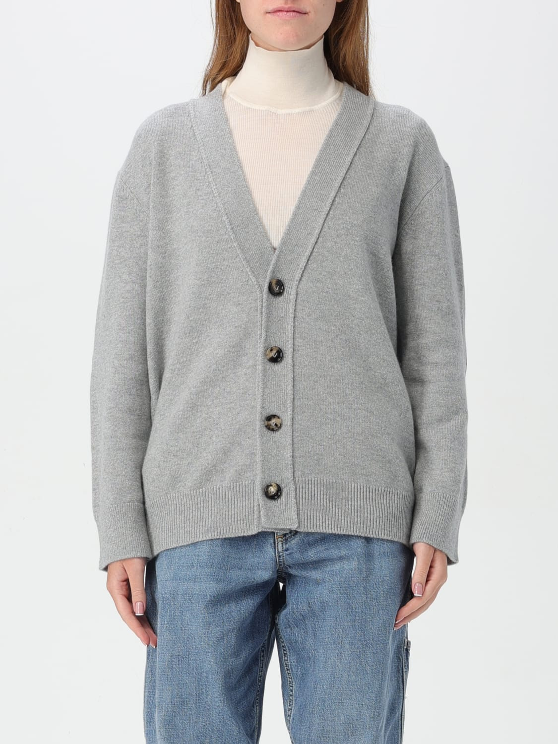 DESCRIPTION - Style: Basic - Neckline: V neckline - Shoulders: Relaxed - Sleeves: Long - Cuffs: Ribbed - Closure: With buttons - Bottom: With straight hemline - Materials: Cashmere - Pattern: Plain-colored DETAILS AND CARE Composition 100 AF SIZE AND FIT Sizes not available Size and fit Regular fit Designer code: 774699V2MM0 8531 Giglio Code: 411219 Designer: Bottega Veneta Collection: Bottega Veneta Woman Category: Clothing Bottega Veneta