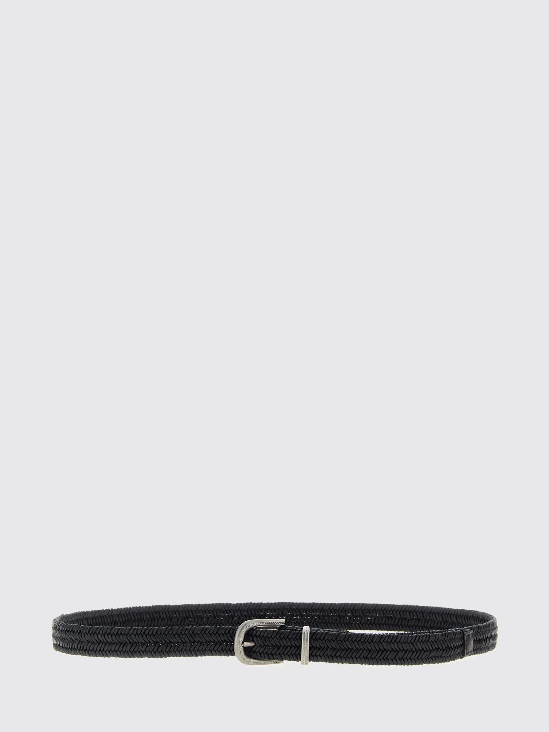 DESCRIPTION - Details: With belt loops - Model: Adjustable, Stretch, Woven - Closure: With metal buckle - Measurements: Width: 2.5 cm - Materials: Woven calfskin - Pattern: Plain-colored DETAILS AND CARE Composition 70% LE 23% VI 7% EL SIZE AND FIT Sizes not available Designer code: M0NAPC228 CNERO Giglio Code: G60355 Designer: Brunello Cucinelli Collection: Brunello Cucinelli Woman Category: Accessories Brunello Cucinelli