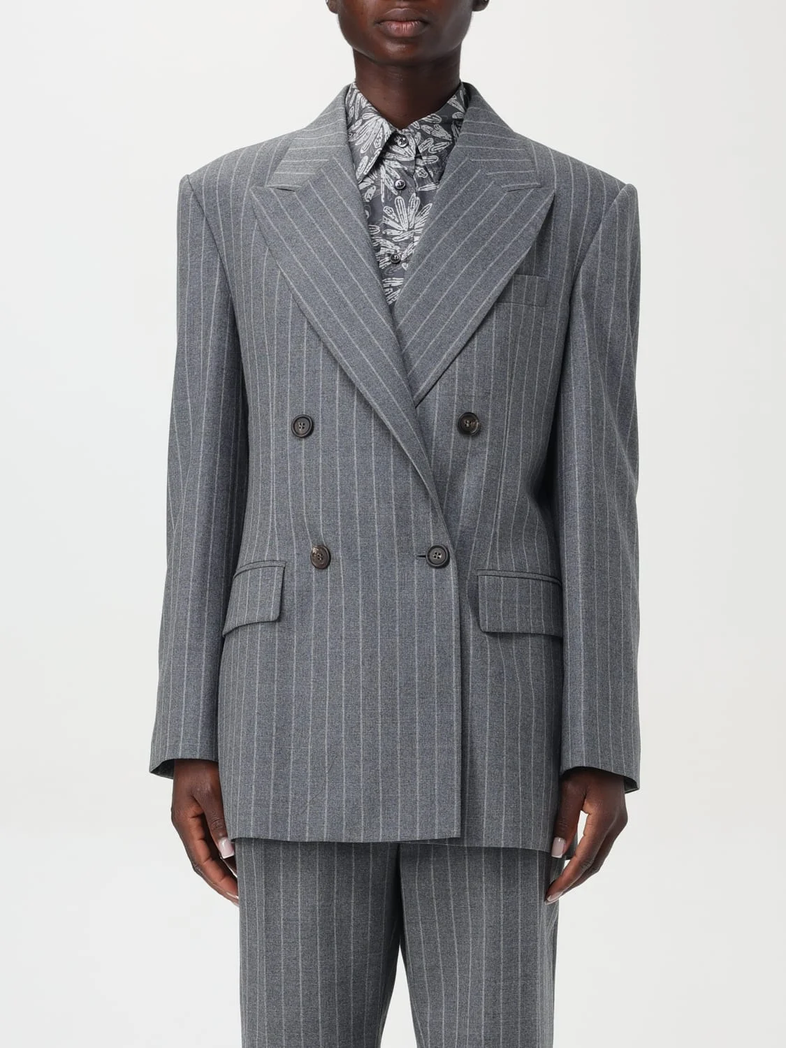 DESCRIPTION - Style: Classic, Formal - Model: Double-breasted - Neck: Peak lapels - Shoulders: Pointed - Sleeves: Long - Closure: With buttons - Pockets: With flap - Materials: Cashmere - Pattern: Pinstripe DETAILS AND CARE Composition _100% WS SIZE AND FIT Sizes not available Size and fit Regular fit Designer code: MD5777190P C004 Giglio Code: F71570 Designer: Brunello Cucinelli Collection: Brunello Cucinelli Woman Category: Clothing Brunello Cucinelli