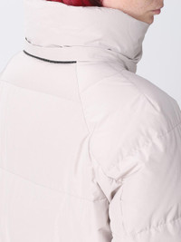 Water-resistant taffeta down coat with monili and detachable cashmere shearling hood