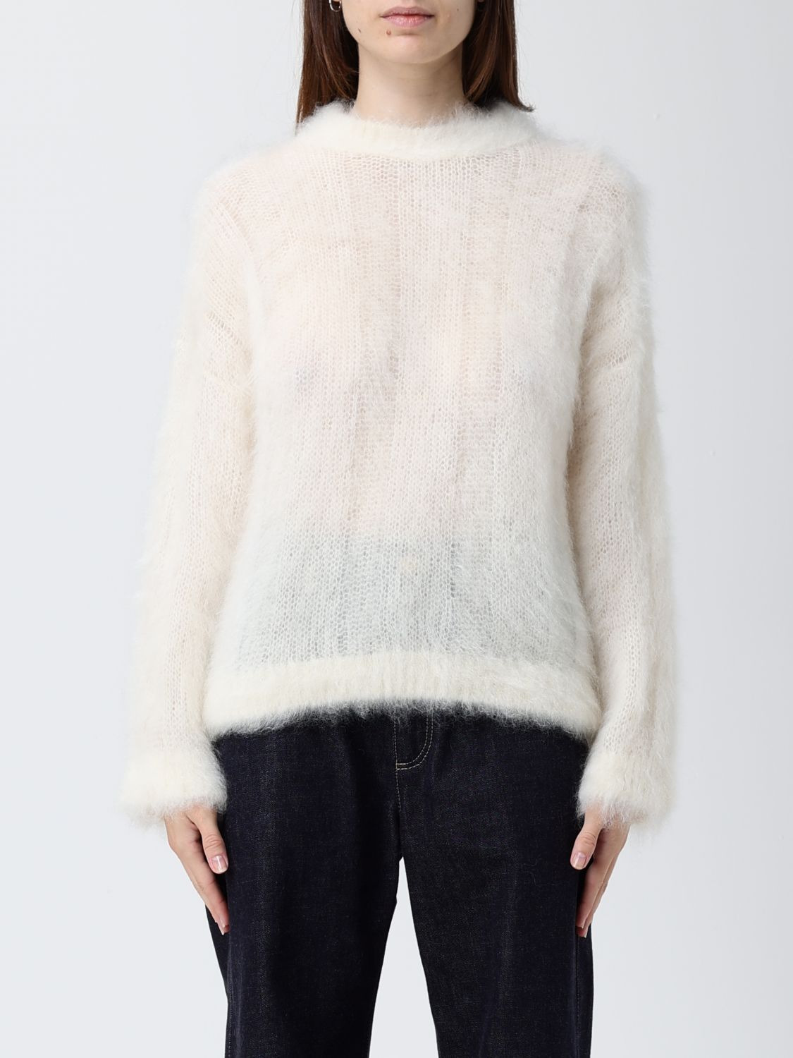 DESCRIPTION - Style: Casual - Neckline: Crewneck - Shoulders: Regular - Sleeves: Long - Bottom: With straight hemline - Materials: Mohair - Pattern: Plain-colored DETAILS AND CARE Composition 80% mohair 20% silk SIZE AND FIT Sizes not available Size and fit Regular fit Designer code: MLD346100 C132 Giglio Code: H38702 Designer: Brunello Cucinelli Collection: Brunello Cucinelli Woman Category: Clothing Brunello Cucinelli