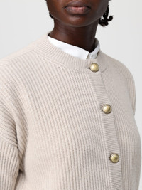 DESCRIPTION - Style: Basic - Neckline: Crewneck - Shoulders: Relaxed - Sleeves: Long - Closure: With buttons - Pockets: Patch pocket - Bottom: With ribbed edges, With straight hemline - Model: Ribbed - Materials: Cashmere, Silk, Wool - Pattern: Plain-colored DETAILS AND CARE Composition 60%virgin wool, 30%cashmere, 10% silk SIZE AND FIT Sizes not available Size and fit Relaxed fit Designer code: M16725126 C9504 Giglio Code: H28977 Designer: Brunello Cucinelli Collection: Brunello Cucinelli Woman Category: Clothing Brunello Cucinelli