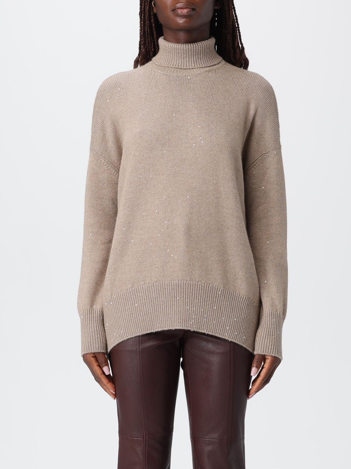 DESCRIPTION - Style: Chic, Minimal - Details: With sequins - Neck: Turtleneck - Shoulders: Regular - Sleeves: Long - Cuffs: Ribbed - Bottom: With ribbed edges, With straight hemline - Materials: Cashmere, Silk - Pattern: Embroidery, Plain-colored DETAILS AND CARE Composition 80% cashmere 20% silk SIZE AND FIT Sizes not available Size and fit Regular fit Designer code: M73539914 CJ077 Giglio Code: H20145 Designer: Brunello Cucinelli Collection: Brunello Cucinelli Woman Category: Clothing Brunello Cucinelli