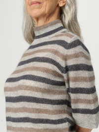 DESCRIPTION - Style: Classic - Neck: Mock turtleneck - Shoulders: Regular - Sleeves: Short - Cuffs: Ribbed - Bottom: With straight hemline - Materials: Mohair - Pattern: Stripes DETAILS AND CARE Composition 42% mohair wool 38% polyamide 12% wool 8% met SIZE AND FIT Sizes not available Size and fit Regular fit Designer code: MBG236814P CLM03 Giglio Code: H18649 Designer: Brunello Cucinelli Collection: Brunello Cucinelli Woman Category: Clothing Brunello Cucinelli