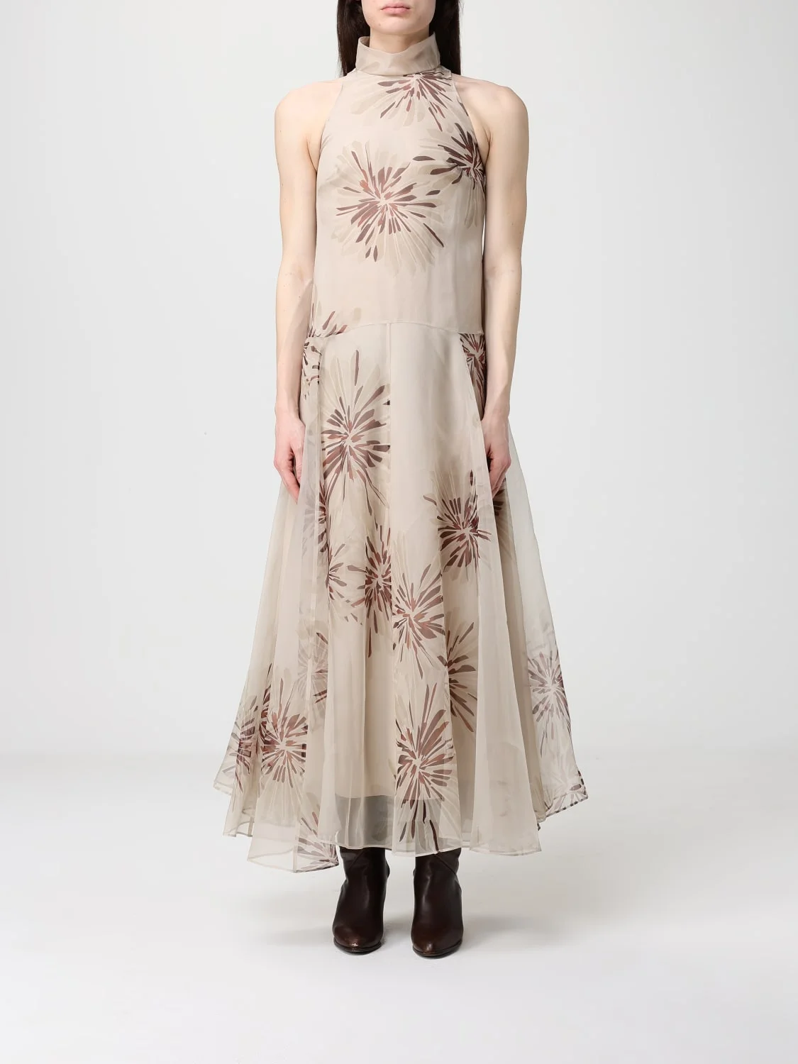 DESCRIPTION - Style: Elegant, Formal - Neckline: Halter neck - Closure: Back closure with zip - Bottom: With straight hemline - Length: Midi dresses - Occasion: Ceremony and cocktail dresses, Evening and party dresses - Sleeves: Off-the-shoulder dresses - Materials: Silk - Pattern: Floral DETAILS AND CARE Composition | SIZE AND FIT Sizes not available Size and fit Regular fit Designer code: MQ198A5419 C004 Giglio Code: I04332 Designer: Brunello Cucinelli Collection: Clothing Brunello Cucinelli Category: Clothing > Dress