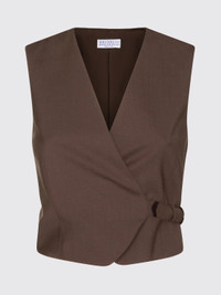 DESCRIPTION - Style: Classic - Shoulders: Regular - Sleeves: Sleeveless - Closure: With bands to tie - Bottom: With straight hemline - Materials: Wool blend - Pattern: Plain-colored DETAILS AND CARE Composition _75%WV 23%PA 2%EA SIZE AND FIT Sizes not available Size and fit Regular fit Designer code: M0W07SW706 C019 Giglio Code: H79098 Designer: Brunello Cucinelli Collection: Brunello Cucinelli Woman Category: Clothing Brunello Cucinelli