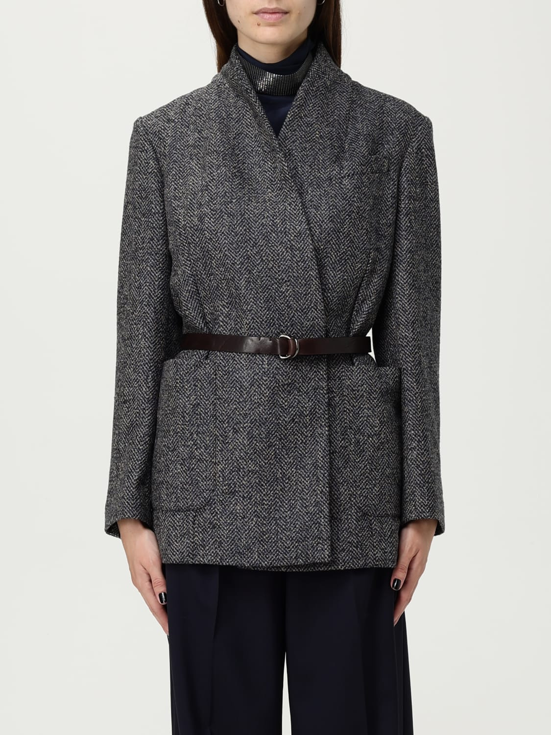 DESCRIPTION - Style: Elegant - Model: Single-breasted - Neckline: V neckline - Shoulders: Regular - Sleeves: Long - Pockets: Patch pocket - Waist: With adjustable belt - Bottom: With back slit - Length: Short jackets - Materials: Wool blend - Pattern: Plain-colored DETAILS AND CARE Composition Wool | 73%WV 27%PA SIZE AND FIT Sizes not available Size and fit Regular fit Designer code: MG5297052 C4897 Giglio Code: H24028 Designer: Brunello Cucinelli Collection: Brunello Cucinelli Woman Category: Clothing Brunello Cucinelli