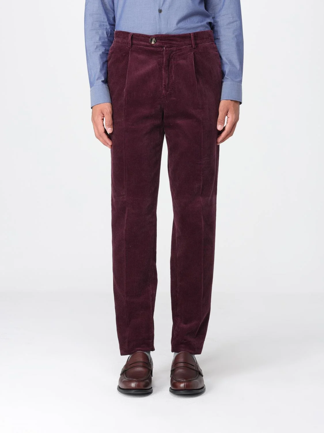 DESCRIPTION - Style: Classic - Model: Ribbed - Closure: With button and zip - Pockets: Back slit pocket - Waist: Medium - Bottom: With straight hemline - Materials: Velvet - Pattern: Plain-colored DETAILS AND CARE Composition GENERAL COTTON 100 - SIZE AND FIT Sizes not available Size and fit Regular fit Designer code: M280UE1450 C6031 Giglio Code: H17535 Designer: Brunello Cucinelli Collection: Brunello Cucinelli Men Category: Clothing Brunello Cucinelli