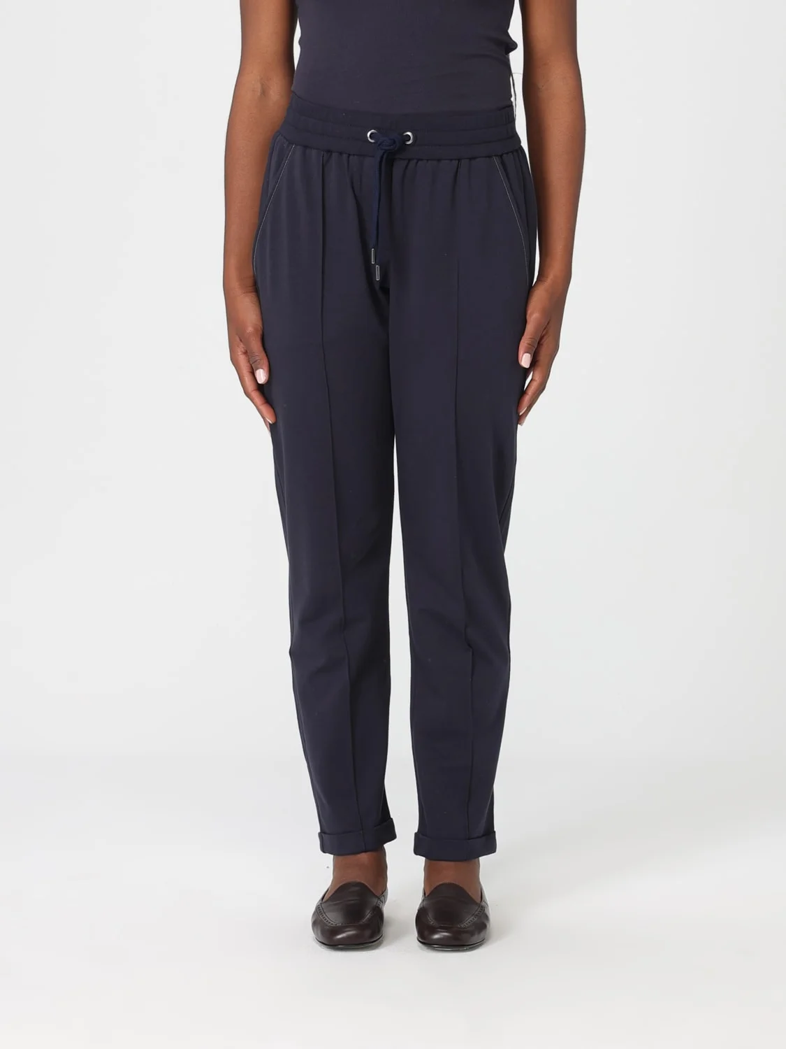 DESCRIPTION - Style: Casual, Sporty - Occasion: Gym, Morning - Model: Jogging, With pleats - Length: Long - Closure: Absent - Pockets: Slit pocket - Waist: Low waist - Bottom: With straight hemline - Materials: Cotton - Pattern: Plain-colored DETAILS AND CARE Composition not available SIZE AND FIT Sizes not available Size and fit Slim fit Designer code: MH827FB799 C4224 Giglio Code: H78456 Designer: Brunello Cucinelli Collection: Brunello Cucinelli Woman Category: Clothing Brunello Cucinelli