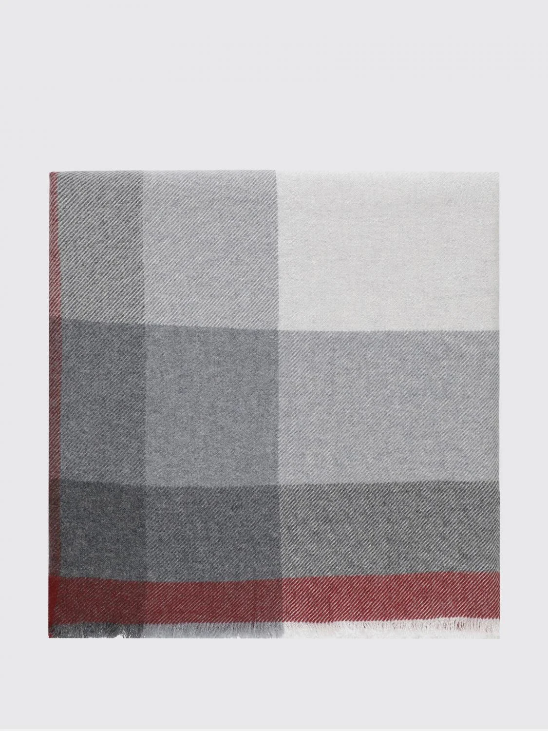 DESCRIPTION - Bottom: Fringed - Shape: Rectangular - Logo: With logo - Materials: Cashmere, Wool - Pattern: Check DETAILS AND CARE Composition 78% lana 22% cashmere Wash and Care Dry clean, Take to a specialized dry cleaner SIZE AND FIT Sizes not available Designer code: MSC666AG CTH57 Giglio Code: H18935 Designer: Brunello Cucinelli Collection: Brunello Cucinelli Men Category: Accessories Brunello Cucinelli