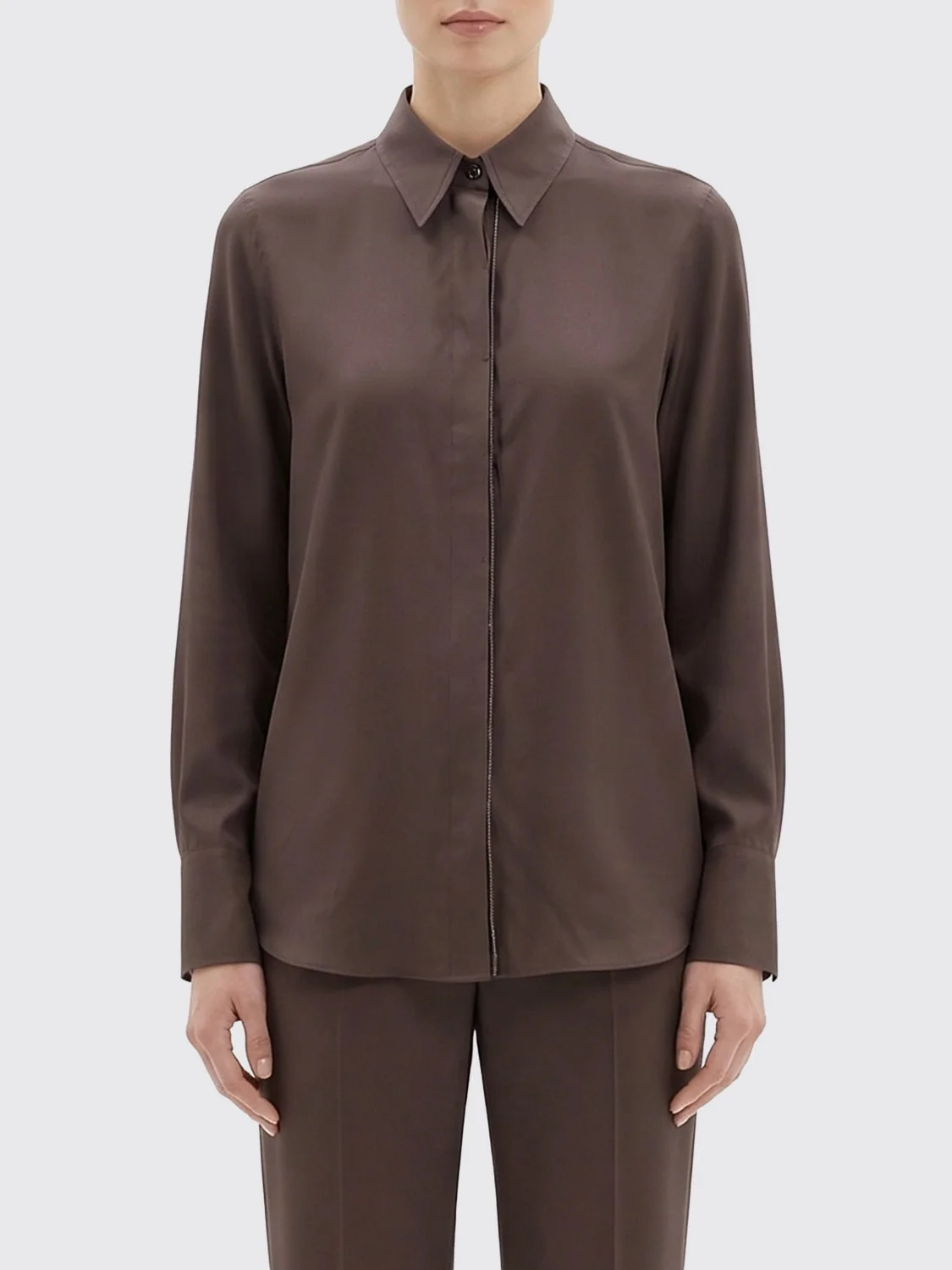 DESCRIPTION - Style: Classic, Formal - Neck: French - Shoulders: Regular - Bottom: With curved hemline - Details: With nickel-free jewels - Closure: Concealed - Sleeves: Long sleeve shirts - Materials: Cotton poplin - Pattern: Embroidery, Plain-colored DETAILS AND CARE Composition T0091 72%CO 23%PA 5%EA SIZE AND FIT Sizes not available Size and fit Regular fit Designer code: M0091MA626 C8589 Giglio Code: 439466 Designer: Brunello Cucinelli Collection: Clothing Brunello Cucinelli Category: Clothing > Shirt