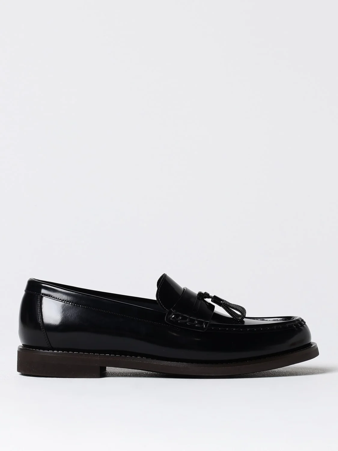 DESCRIPTION - Details: With tassels - Lining: Leather, With logo - Model: Slip on - Toe: Raised toe box, Round - Ankle: With strap - Sole: Leather - Materials: Brushed calfskin - Pattern: Plain-colored DETAILS AND CARE Composition TZVNT 100%LE CALF BOS TAURUS TAURUS SIZE AND FIT Sizes not available Designer code: MZVNG2739 C101 Giglio Code: 412465 Designer: Brunello Cucinelli Collection: Brunello Cucinelli Woman Category: Shoes Brunello Cucinelli