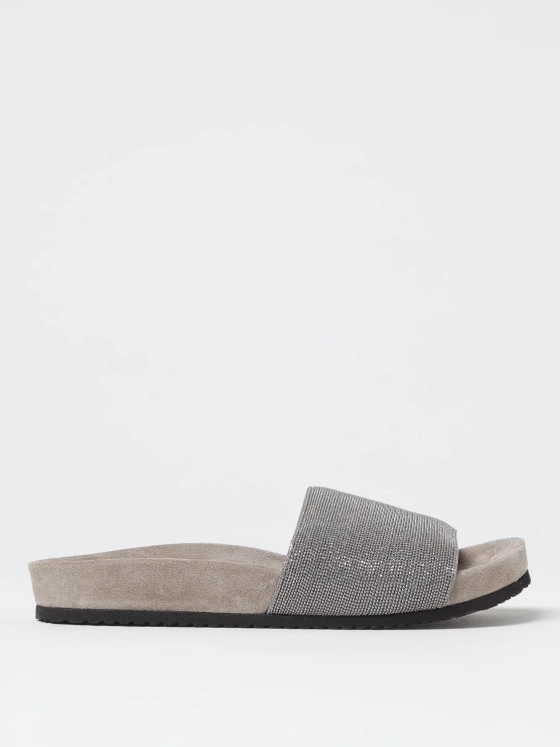 DESCRIPTION - Details: With penny keeper, With nickel-free jewels - Lining: With logo, Suede leather - Model: Flat - Toe: Open, Round - Sole: Rubber - Heel: Low - Materials: Brass, Suede DETAILS AND CARE Composition not available SIZE AND FIT Sizes Heel: 3 cm Designer code: MZMIG1390 C6351 Giglio Code: F13971 Designer: Brunello Cucinelli Collection: Brunello Cucinelli Woman Category: Shoes Brunello Cucinelli