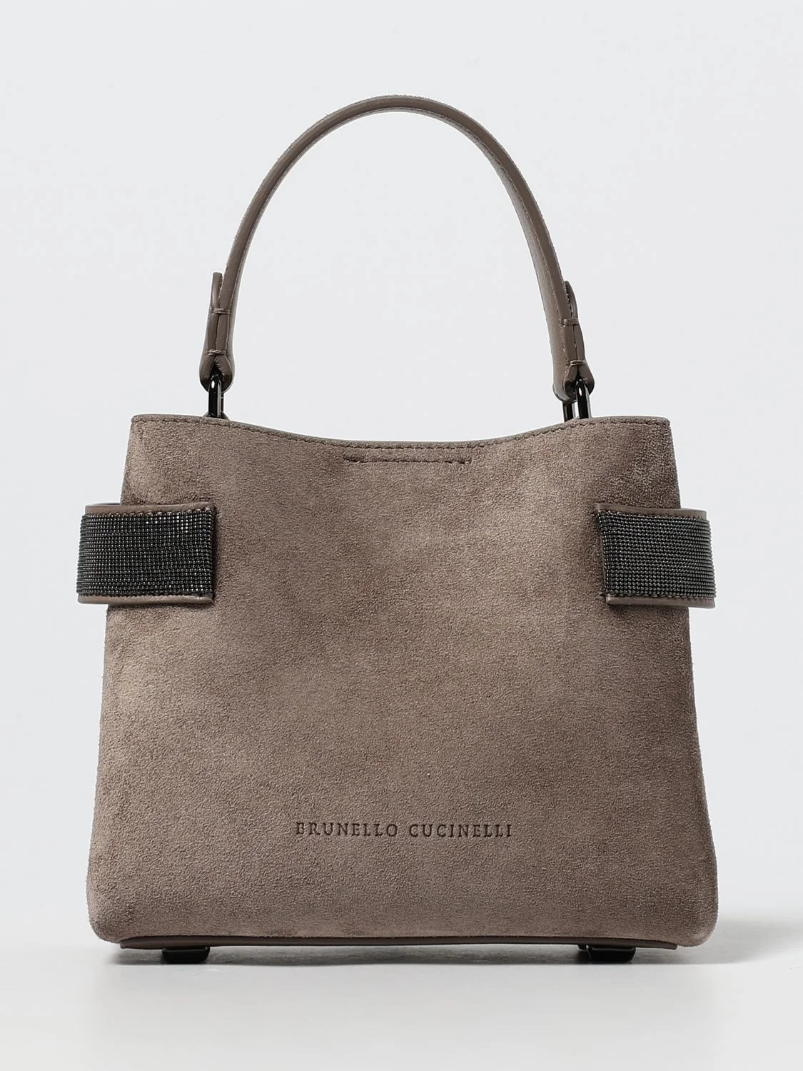 DESCRIPTION - Lining: Leather, With logo - Model: Hand - Closure: Magnetic - Shape: Flared - Handle: Flat - Shoulder strap: Adjustable and removable - Details: With nickel-free jewels - Materials: Suede calfskin - Pattern: Embroidery, Plain-colored DETAILS AND CARE Composition 100 AF SIZE AND FIT Sizes Width : 20,5 cm Height: 17,5 cm Depth: 9 cm Handle height: 10,5 cm Designer code: MBDLD2499 C2659 Giglio Code: 431502 Designer: Brunello Cucinelli Collection: Brunello Cucinelli Woman Category: Bags Brunello Cucinelli