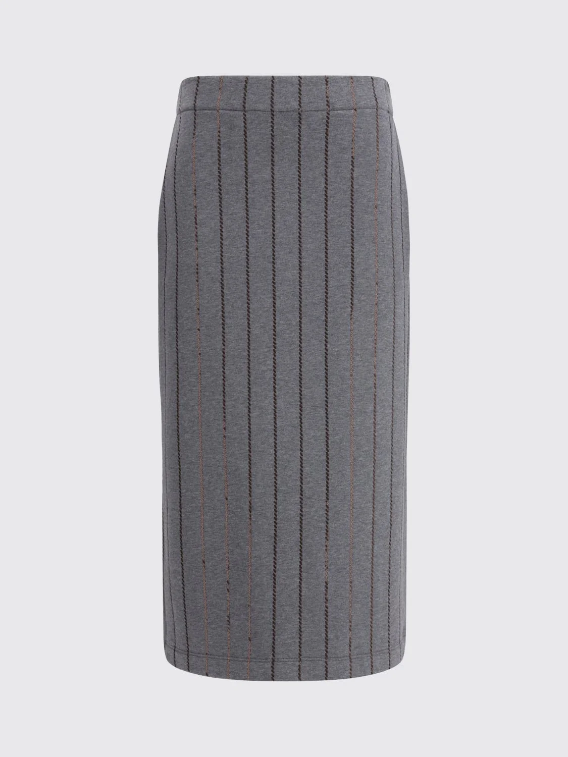 Cotton smooth French terry midi skirt with dazzling chalk stripe embroidery
