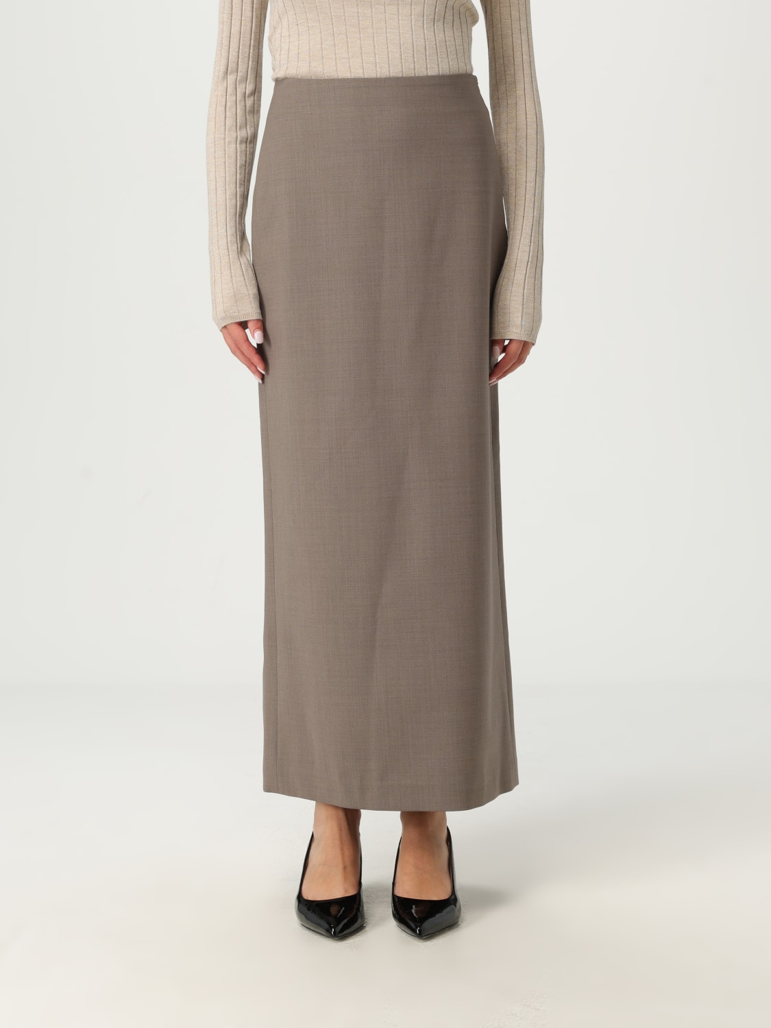 DESCRIPTION - Style: Minimal - Closure: Side closure with zip - Waist: High - Bottom: With straight hemline - Length: Long skirts - Materials: Wool blend - Pattern: Plain-colored DETAILS AND CARE Composition _75%WO 23%PA 2%EA SIZE AND FIT Sizes not available Size and fit Regular fit Designer code: MPW07G3882 C054 Giglio Code: H17894 Designer: Brunello Cucinelli Collection: Brunello Cucinelli Woman Category: Clothing Brunello Cucinelli