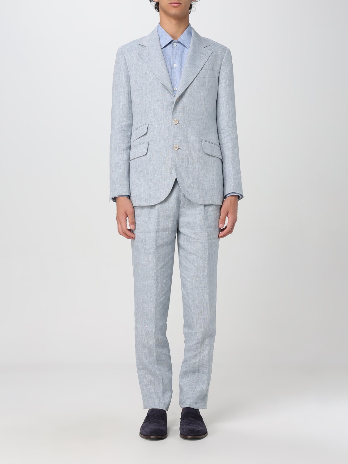 DESCRIPTION - Style: Elegant - Logo: With logo - Model: Single-breasted - Neck: Peak lapels - Shoulders: Regular - Sleeves: Long - Closure: 2-button - Pockets: With flap - Waist: With loops, Medium waist - Bottom: With straight hemline - Materials: Linen - Pattern: Plain-colored DETAILS AND CARE Composition GENERAL LINO *SOST CON LI* 100 - SIZE AND FIT Sizes not available Size and fit Slim fit Designer code: MB430LDWH C076 Giglio Code: G50655 Designer: Brunello Cucinelli Collection: Brunello Cucinelli Men Category: Clothing Brunello Cucinelli