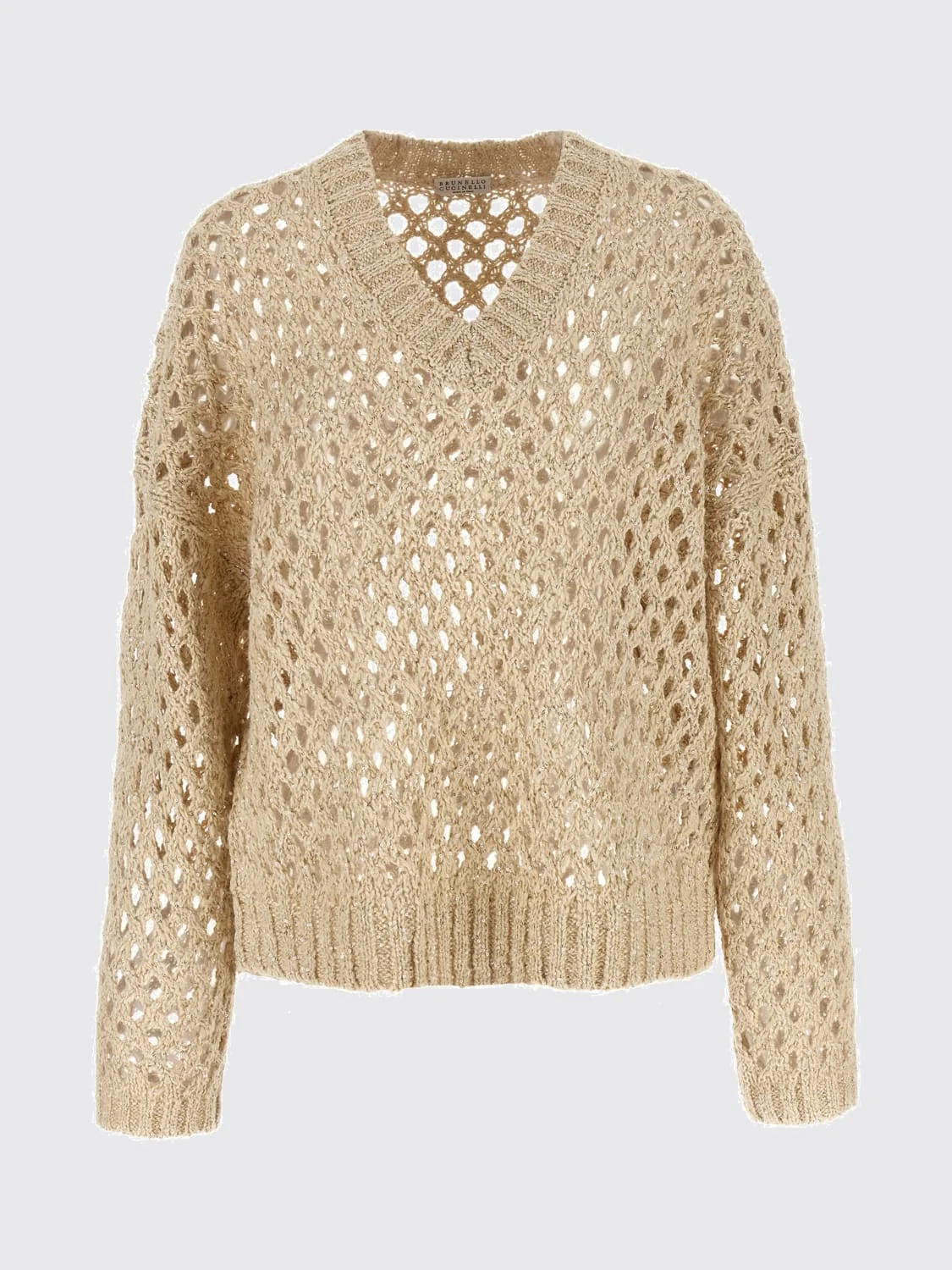 DESCRIPTION - Style: Casual - Neckline: V neckline - Shoulders: Relaxed - Sleeves: Long - Bottom: With straight hemline - Model: Pierced - Materials: Linen blend, Silk blend - Pattern: Plain-colored DETAILS AND CARE Composition not available SIZE AND FIT Sizes not available Size and fit Relaxed fit Designer code: MEA338202P CBU80 Giglio Code: H17716 Designer: Brunello Cucinelli Collection: Brunello Cucinelli Woman Category: Clothing Brunello Cucinelli